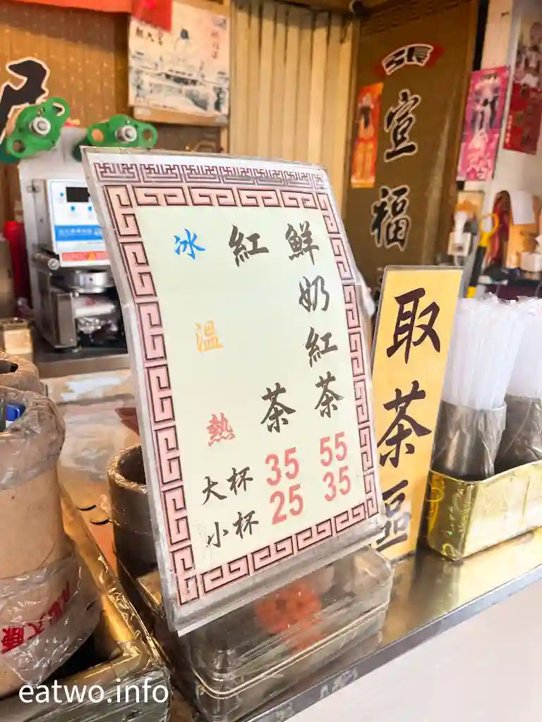 「宣福居」頂頭除咗有招牌,似乎重有一間廟宇,而店舖名稱都有幾分似係同廟宇有關係。更意外嘅地方,係全店只有兩款手搖茶飲可以選擇,包括紅茶TWD25至35、鮮奶紅茶TWD35至55,能夠再選擇嘅就係大杯定小杯,亦可調整冰塊、甜度,以及冰、溫、熱嘅體感溫度。紅茶最初飲落似普通紅茶,但嗒真啲茶底入口係似古早味紅茶,無咩澀味,亦算順口,選擇咗無糖所以唔覺有多餘甜味。而鮮奶紅茶就即係奶茶,於紅茶內加入鮮奶製作,似平時啲厚奶茶,但奶味唔會太重。