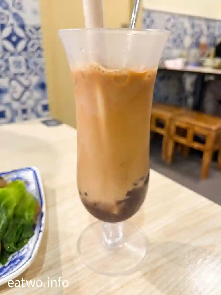 飲品基本上同普通茶餐廳無異,都無咩好講,普通汽水都要$13,係有啲比較少見嘅,例如紅豆冰奶茶$27,最底有紅豆蓉同紅豆粒,上面就係奶茶,水份比較多,奶茶味一般,紅豆量就適中。雖然室外好熱,不過室內冷氣真係好大,飲埋凍飲真係打咗個冷震。