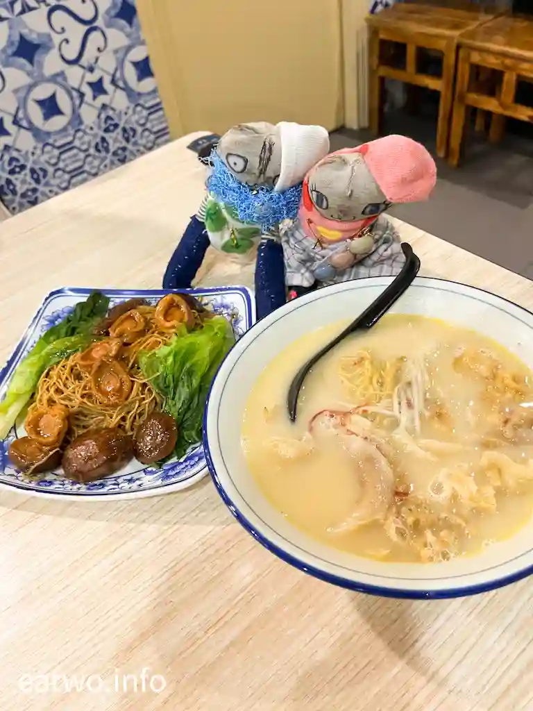 飯麵嚟講最平係冬菇菜麵$30,牛腩麵就賣$38,呢啲都係較正常嘅價錢。如果要上述鮑魚、花膠、魚翅呢啲矜貴食材,價格都要$78至$95,一碗魚翅湯或花膠湯都要$80,其實等同香港拉麵店嘅價位,成本低但賣緊拉麵價,湯麵到底係咩水準呢?