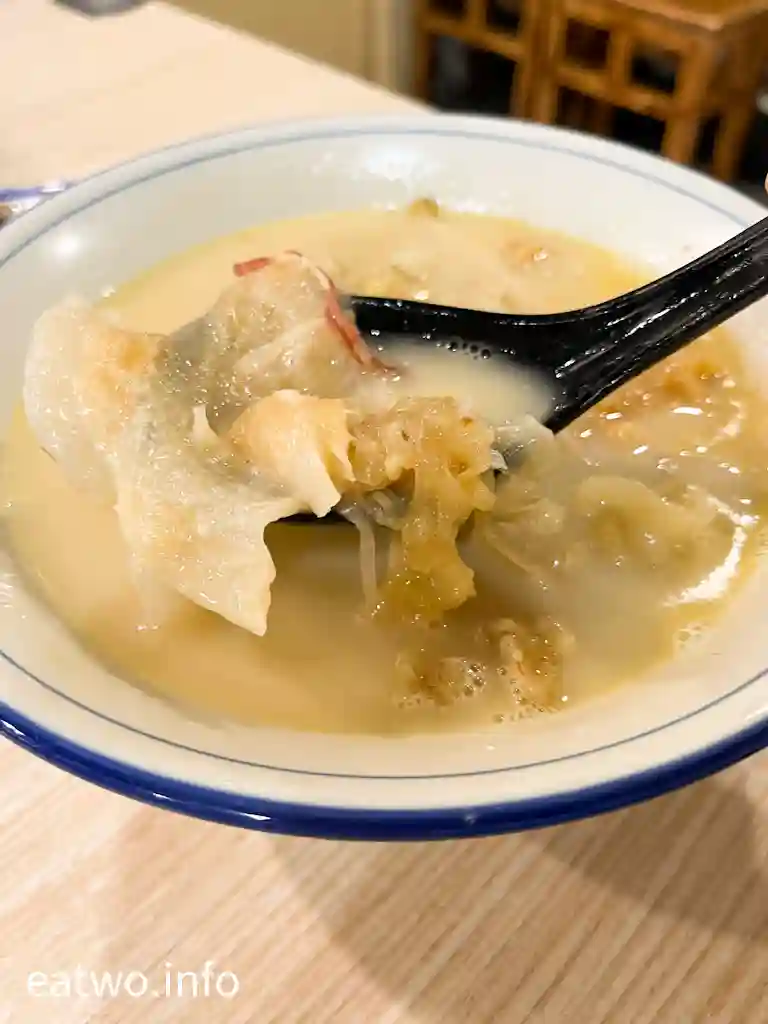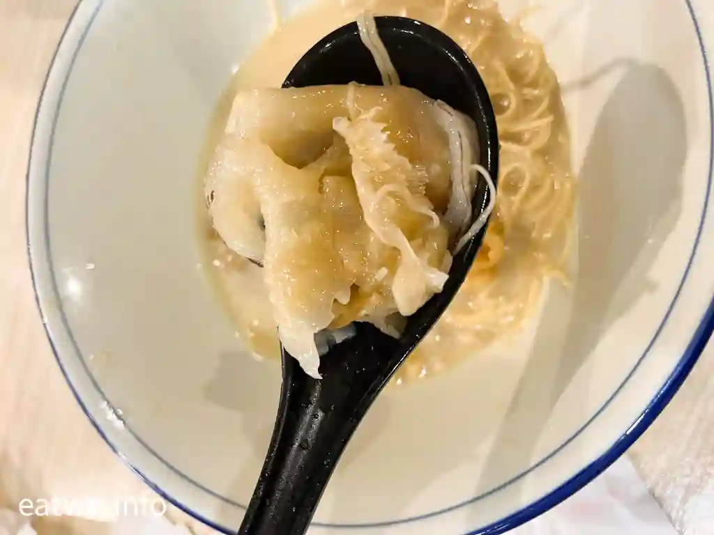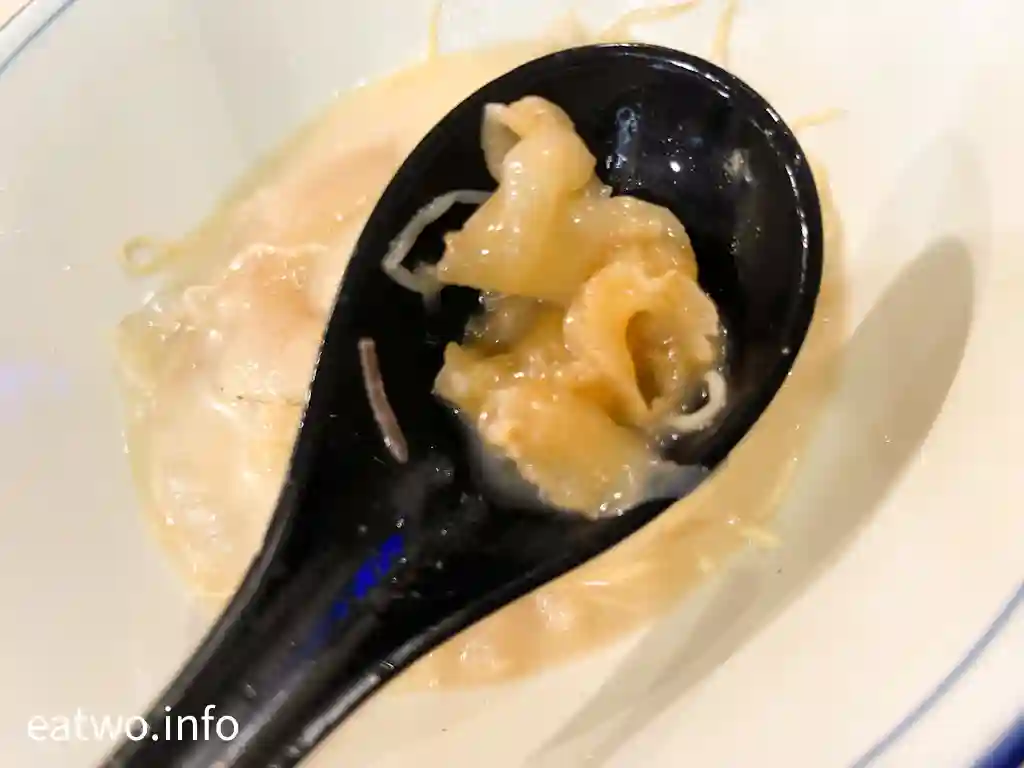 而花膠同魚翅量都唔多,花膠只係細細卷,魚翅無咩一梳梳嘅情況,就似一塊塊魚翅皮。如果平價魚翅湯麵都係呢個價位,其實真係食牛腩麵算,或者畀多幾十蚊食魚翅湯專門店,皆因其他店最平嘅魚翅湯都唔係貴好多。