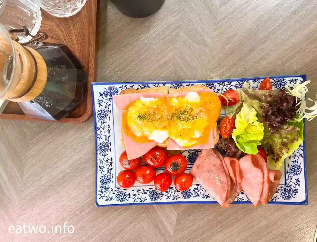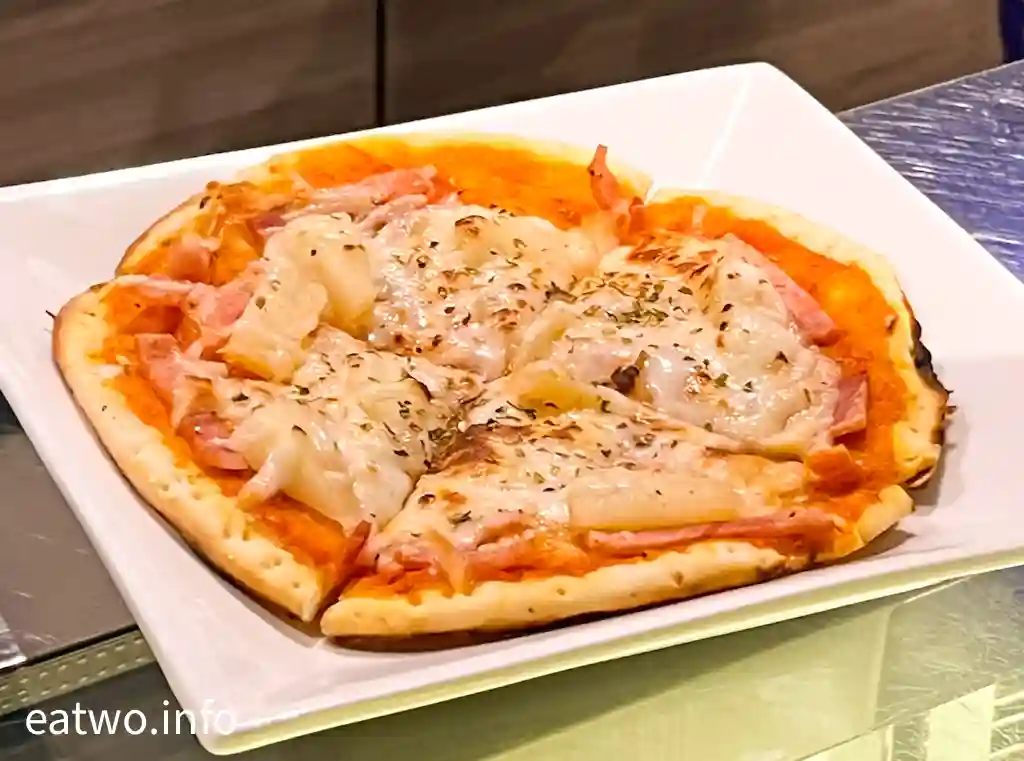 火腿加Egg Benedict $80 就同平時坊間咖啡店嘅輕食相近,無咩特別,底層係烘過嘅麵包,上面係水波蛋,切開有蛋汁流出,側邊都係啲沙律菜。後來,見到其他人點迷你薄餅,pizza有千島海鮮味$58、夏威夷$58、水牛芝士蕃茄$48,大小就似6吋左右,餅底唔似意式pizza。