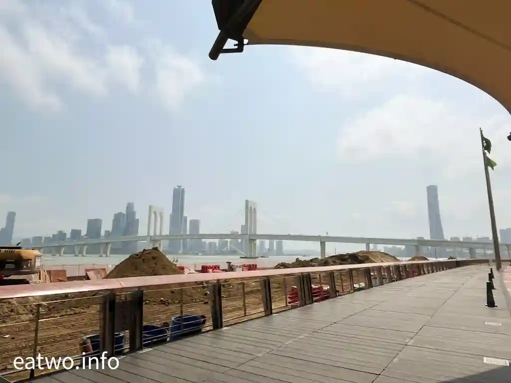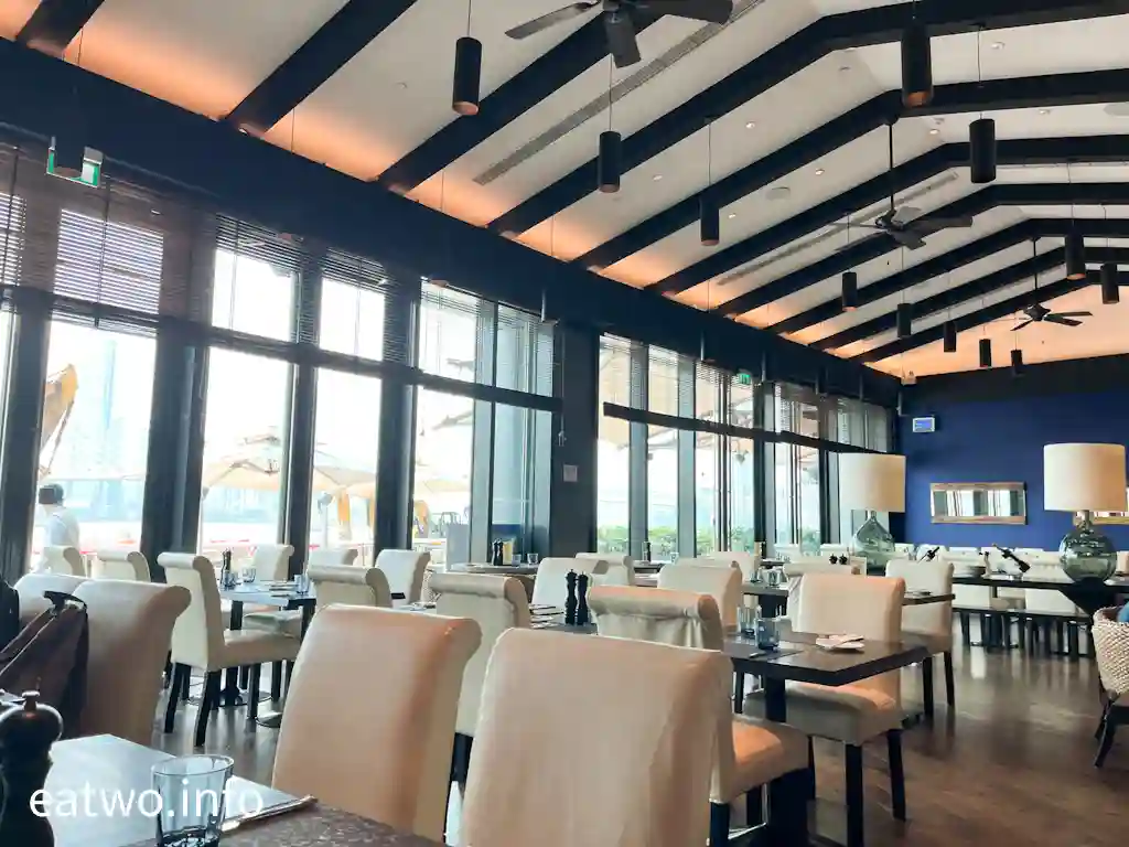 餐廳座位並唔算多,大概得150個,一隅設有落地大窗,外面係一個平台,可以徒步出去。位置可外望南灣海景,「西灣大橋」就近在咫尺,更可眺望氹仔風景。不過,當日窗外有工程進行中,若然坐窗邊,其實只係睇到一堆沙泥,因為工人做緊工程。