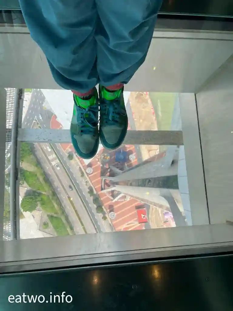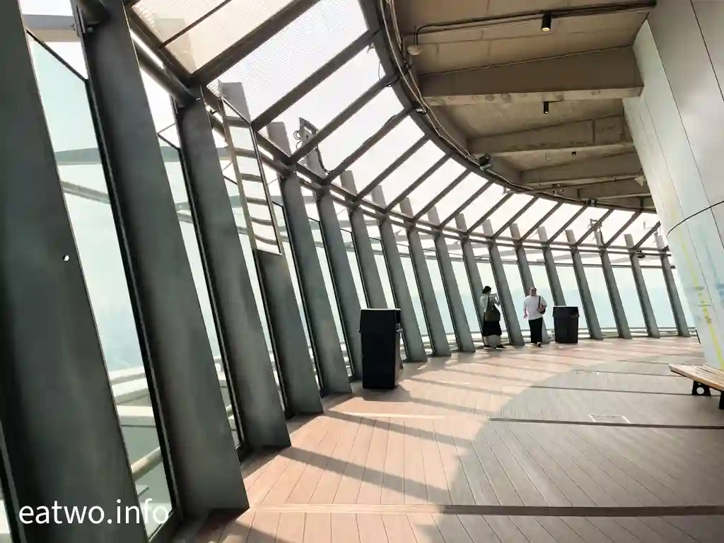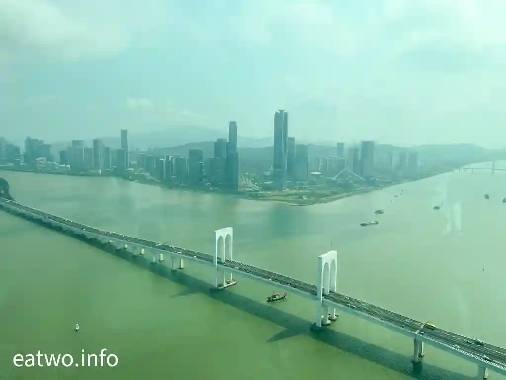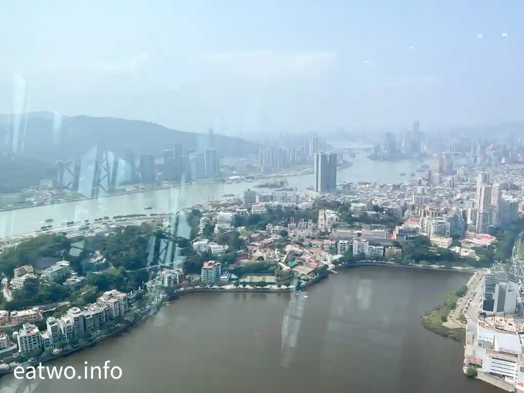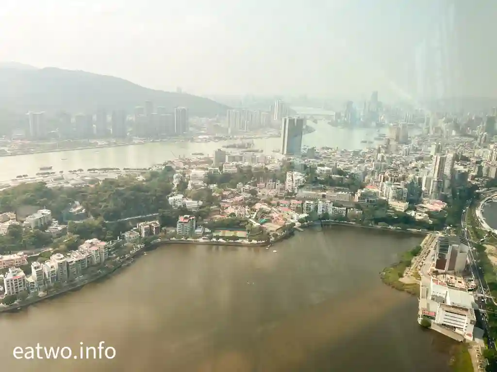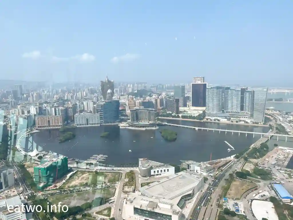 「澳門旅遊塔」有約338米高,係澳門知名地標同觀光塔,其實比巴黎「艾菲爾鐵塔」、澳洲Sydney「AMP Tower」、奧克蘭「Sky Tower」等更高!先登上58樓,呢一層依然係室內空間,但走一個圈,就已經可以360度環瞰澳門全景!呢一層樓四面八方都係落地大玻璃窗,景觀係比較遼闊同清晰,摩天大樓、葡式建築物、海岸線皆一覽無遺,只係需要隔住玻璃觀望。