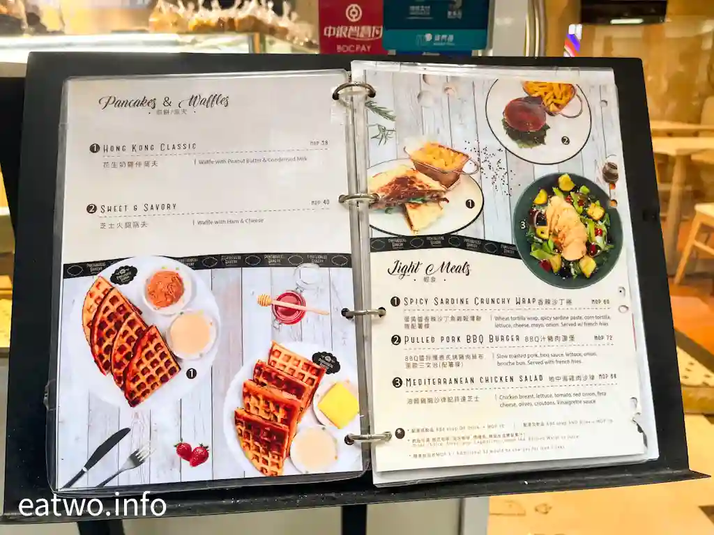 本來見到餐牌有鮮榨果汁$35,有3款口味,包括橙、甘筍、菠蘿,但當日竟然無供應!最後只係選擇咗一杯凍mocha $34,以及一杯熱latte $29。咖啡水準真係非常騎呢,凍咖啡水份比咖啡重9倍,朱古力佔大概1成,即沖美祿都好飲過佢。本來諗住熱咖啡會好啲,但咖啡無拉花,只有一坨泡沬都算,咖啡入口都係無乜咖啡味,好似奶味比咖啡味重要多,部咖啡機唔知係咪壞咗呢?