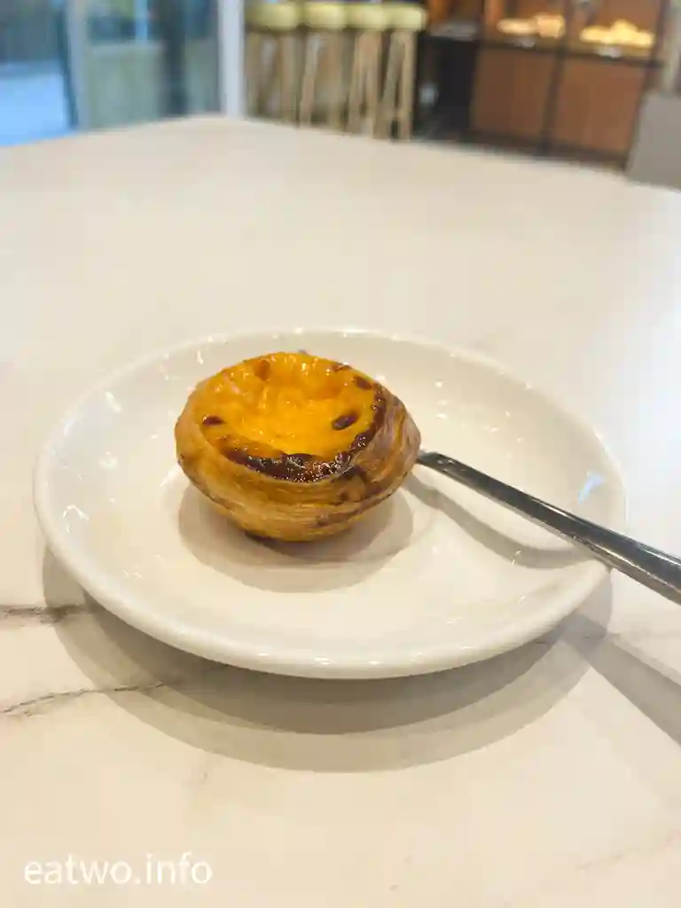 一件葡撻$12,賣相不俗,同一般葡撻無咩太大分別,只係比較迷你。餅底似牛油皮多過酥皮,但又唔係酥皮蛋撻嗰種酥香,好重牛油味。蛋漿並非好軟滑,有少少偏紮實,蛋味唔太多,甜度較高,食多兩啖終於恍然大悟,入口竟然還原港式燉蛋!