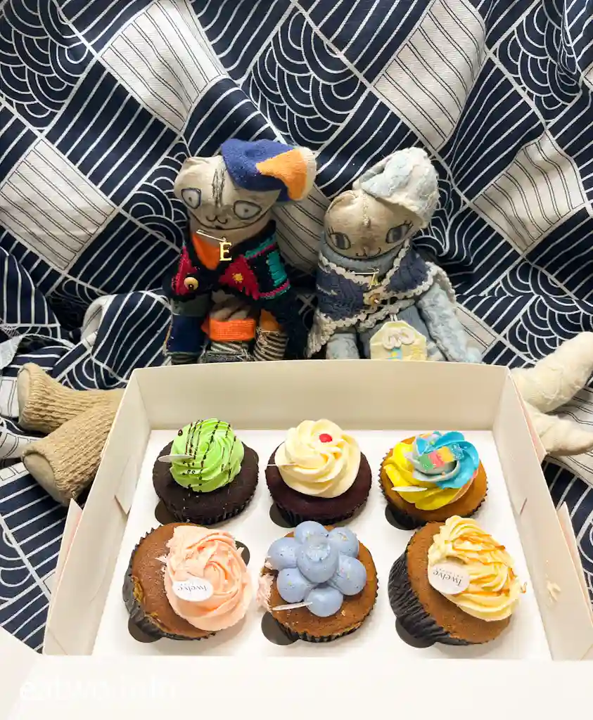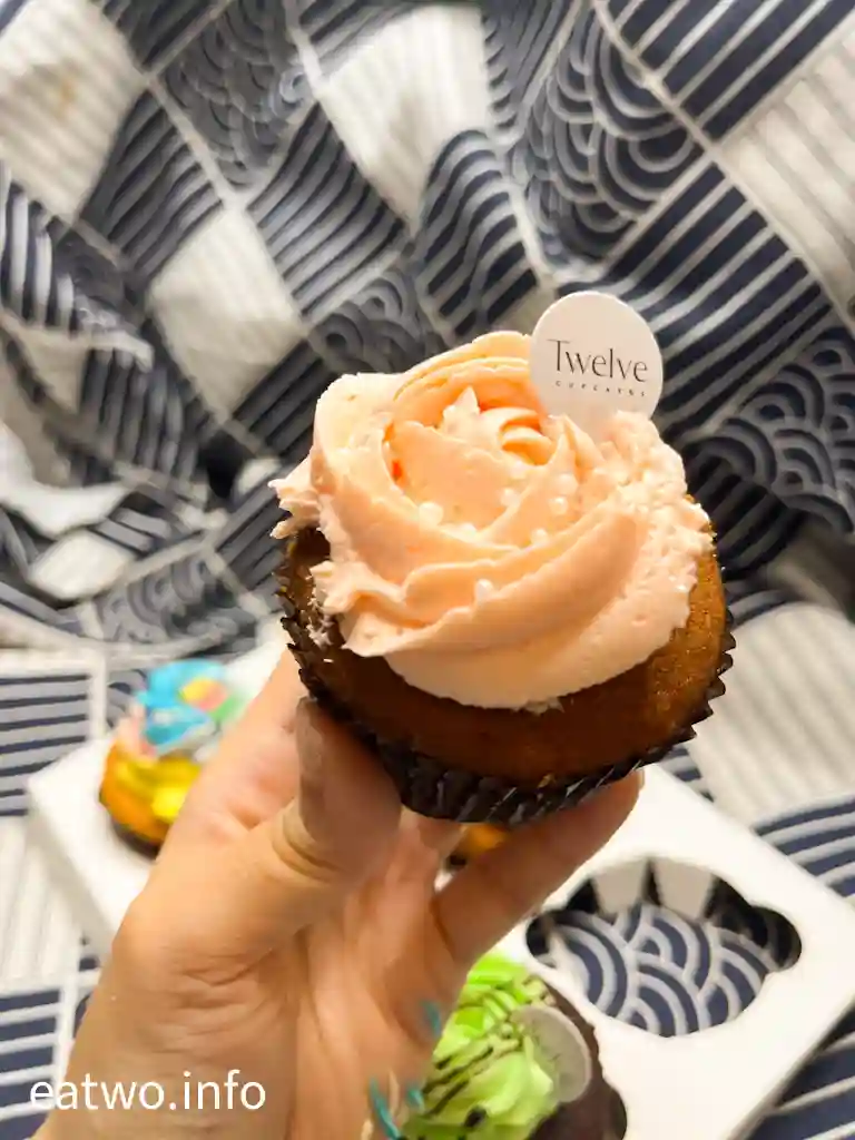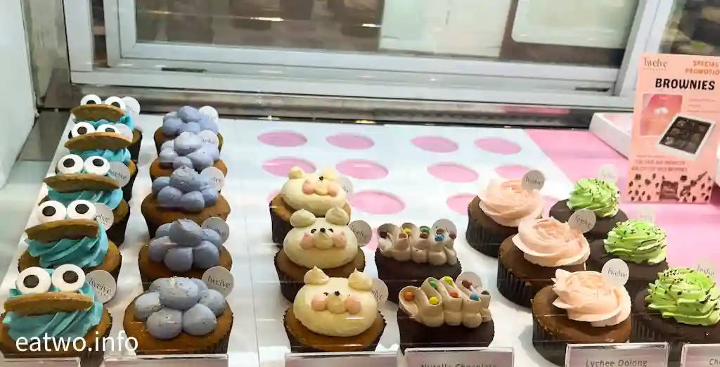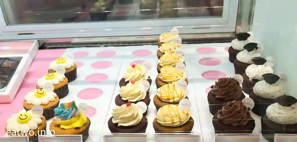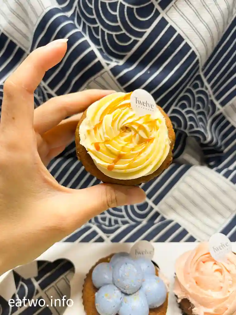 今次E.A.Two選擇「Twelve Cupcakes」嘅Regular size杯子蛋糕,雖則Cupcake口味有12款選擇,但我哋只係買咗半打,即係當中嘅一半。藍色怪獸係藍莓牛油忌廉配藍莓蛋糕;蝶豆花蜂蜜係蝶豆花牛油忌廉配蜂蜜蛋糕;甜蜜小熊係好立克牛油忌廉配好立克蛋糕;Nutella榛子醬朱古力係Nutella醬牛油忌廉配朱古力蛋糕;荔枝烏龍係荔枝牛油忌廉配烏龍茶蛋糕;薄荷朱古力係薄荷牛油忌廉配朱古力蛋糕;微笑花花係雲呢嗱牛油忌廉配檸檬蛋糕;夢幻彩虹杯係雲呢嗱牛油忌廉配雲呢嗱蛋糕;紅絲絨係紅心糖配忌廉芝士加紅絲絨蛋糕;岩鹽焦糖係岩鹽焦糖醬配雲呢嗱牛油忌廉加岩鹽雲呢嗱蛋糕;雙重朱古力係朱古力脆波配朱古力忌廉芝士加朱古力蛋糕;曲奇忌廉係曲奇配曲奇牛油忌廉加朱古力蛋糕。