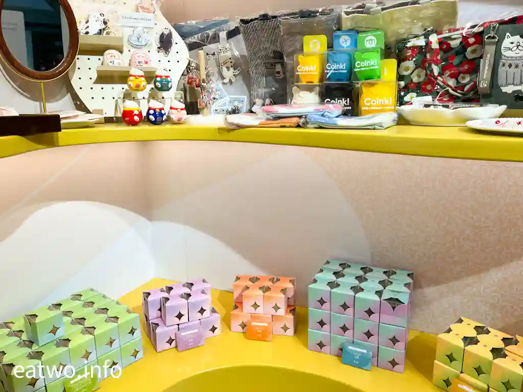 其實,店內重有生日蛋糕同配件可以選擇,有朋友生日都可以預訂蛋糕。原個4吋蛋糕就賣$280、$320一個,5吋就係$380,當然視乎唔同口味同size,有啲蛋糕有特別限定款式可以選擇,造型可愛。店內重有精品小物可以選擇,其中有售賣有本地手作飾物,例如零食造型吊飾,重有紅白藍手袋、生命麵包手袋、香港小食主題手袋等等。