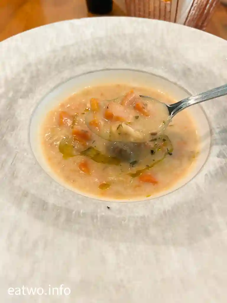 午餐加配是日餐湯$18,當日為洋蔥湯,份量同一般西餐廳無異,都係大大隻碟,入面得一碗仔。不過,湯汁濃稠,配料豐富,入口微甜。而加配風味薯條就加$20,薯條連有茄汁,寫明每日限售581份。而薯條就係普通粗薯條,份量不少,只不過真係即炸起先影脆,凍少少就唔好食,係爭啲薯香。其實飲品包含茶或咖啡,而且已較少甜,都可以加$9轉其他茶飲,例如凍鳳梨蜜桃梳打、凍白桃烏龍茶,前者係糖漿嚟,所以比較甜;後者反而幾驚喜,有茶香味,濃度頗高,頭啖有啲似咖啡,有茶香餘韻,帶有回甘味。