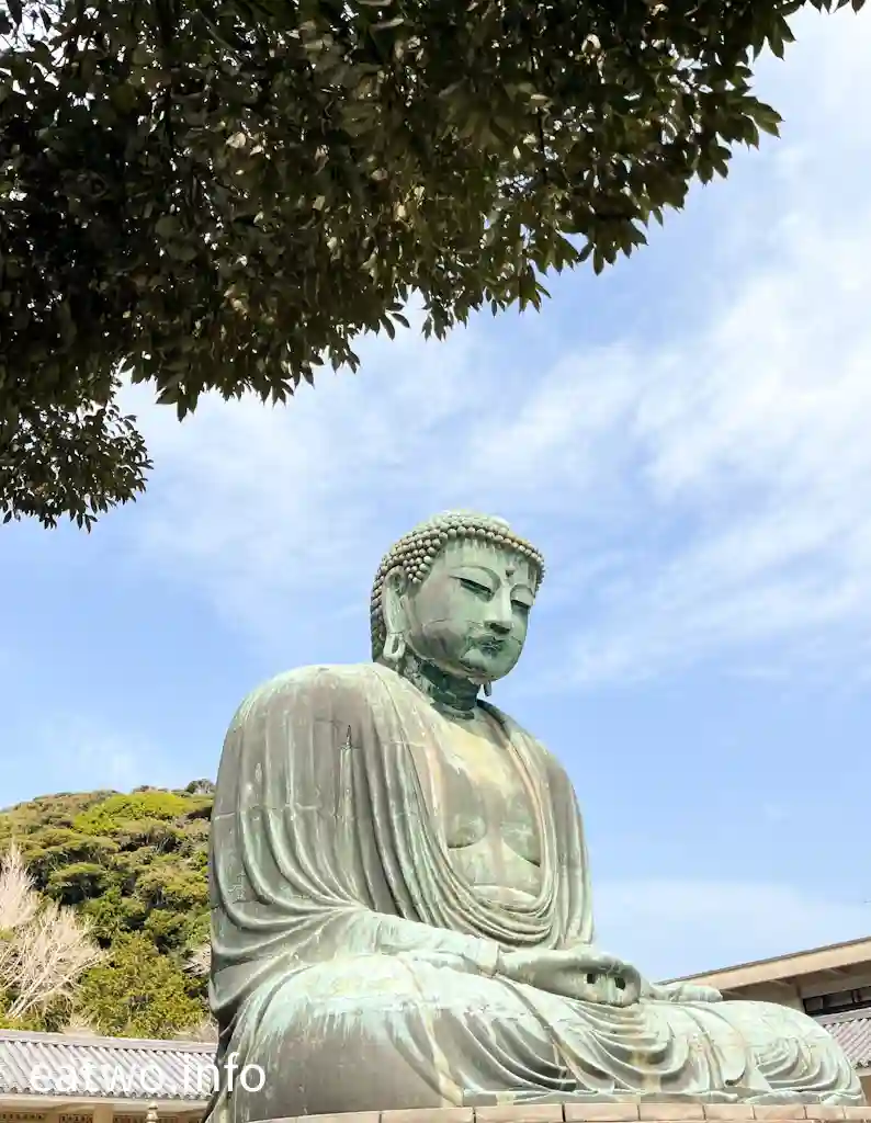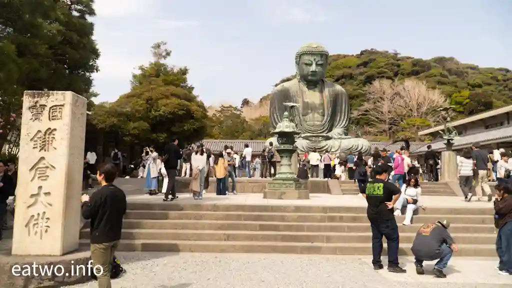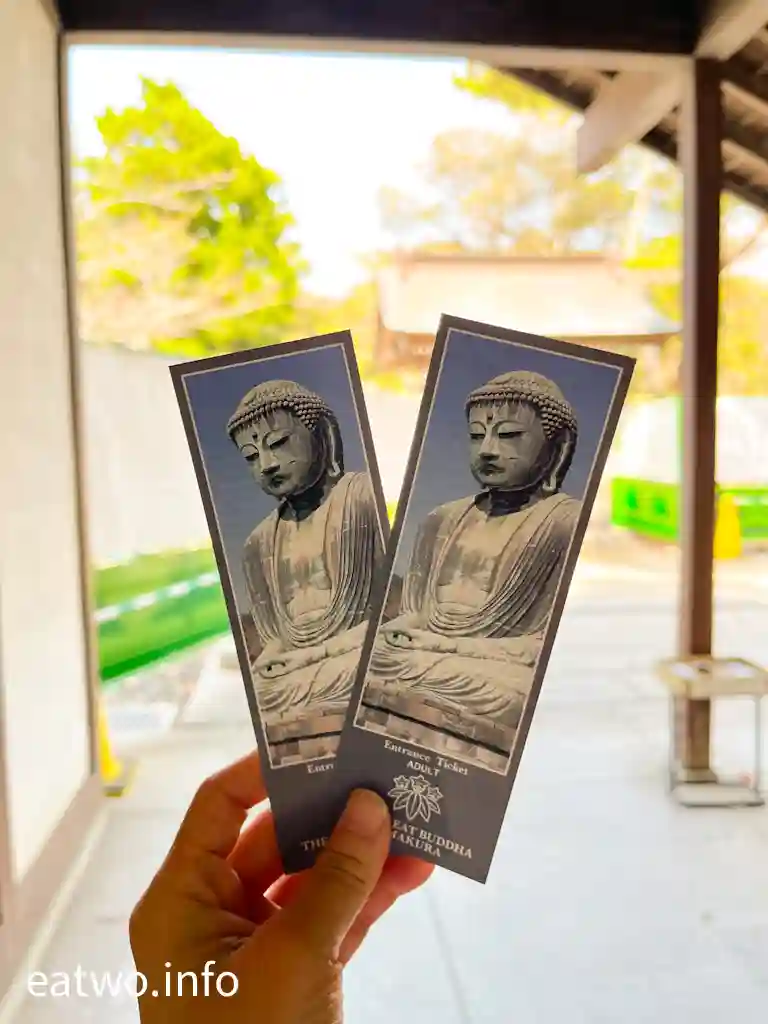 上行至「鎌倉高德院」,先於門口購票,人均參拜入場費僅需300円。入面標誌建築就係當中嘅巨型大佛,據悉佛像有13.25米高,重約121噸,連埋台座有13.35米,係全日本戶外最大嘅佛像,僅次於「奈良東大寺」大佛,實在霸氣!不過,「高德寺大佛」就未有香港「天壇大佛」咁大,因為香港大佛係全世界第二大戶外青銅座佛。
