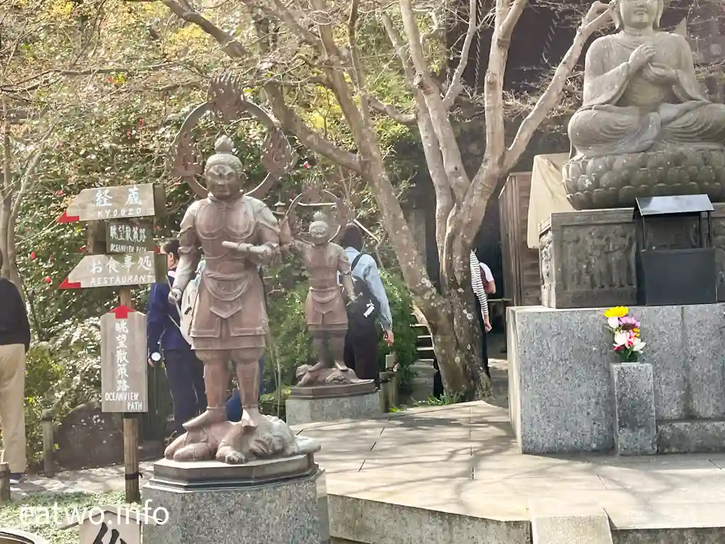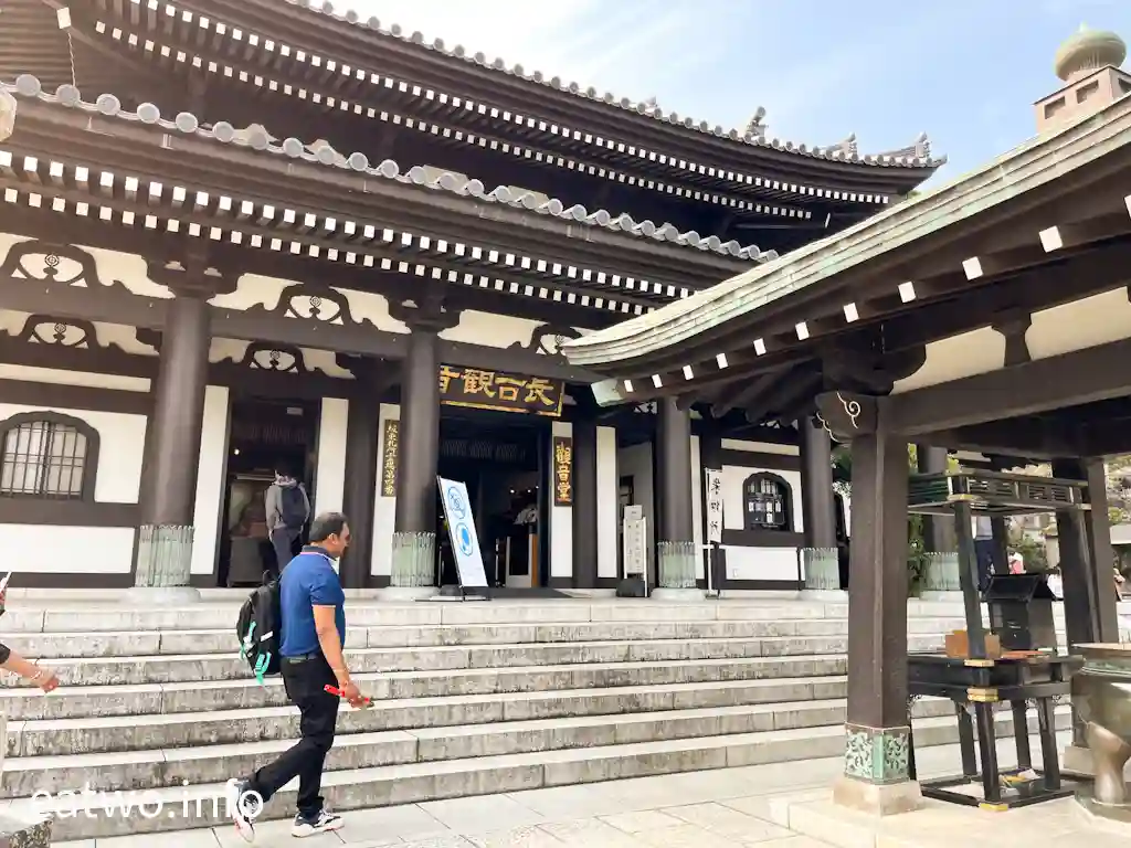接下來折返原路「長谷大仏通り商店」,即係長谷車站大佛通商店街,可以前往另一個歷史意義嘅地方「長谷寺」。呢座寺廟又叫做「花の寺」,一年四季都可以賞花,寺內滿佈花卉,門口會展示花卉名稱,賞花可以走向右邊。如果於6月下旬左右前往,更可以觀賞盛開嘅紫陽花。而「長谷寺」入場費為400円,內裏有座9.18米高嘅觀音像,該觀音像有11面,係最大嘅木雕佛像,係一座「長谷觀音寺」。