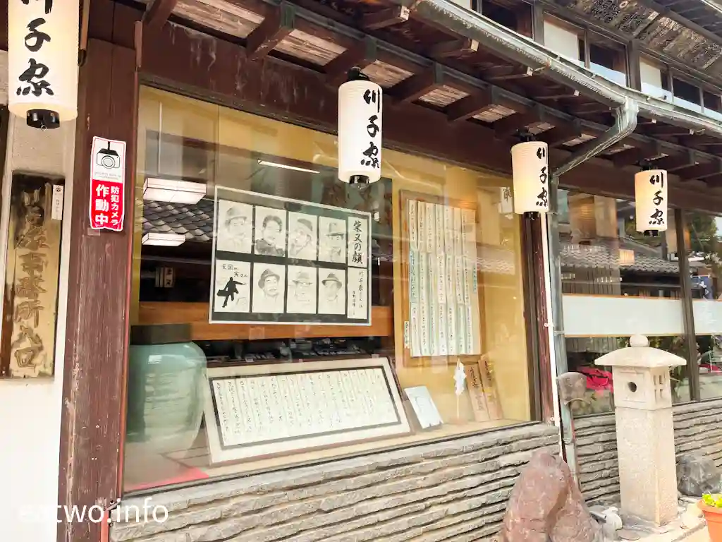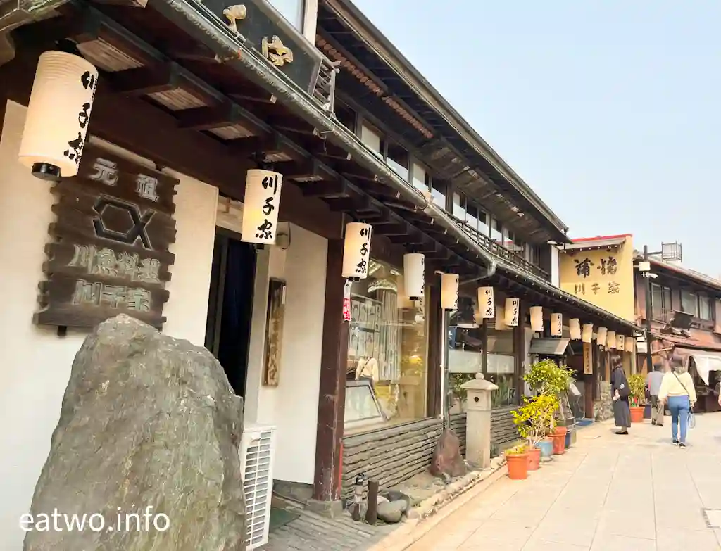 座落於「帝釋天參道」內嘅「鰻魚 川千家」,係「柴又」一帶知名鰻魚專門店,以鰻魚飯、鯉魚湯、鮮鯉魚片、鰻魚料理為主打。據了解,呢間鰻魚老店有超過250年歷史,最早可追溯至江戶時代。店舖有2層樓高,內外有石磚、旗幟等,貫轍「柴又」一帶嘅昭和時代風格,而木製招牌甚至寫住「川魚料理始祖」,外面更有新鮮鰻魚同鯉魚。