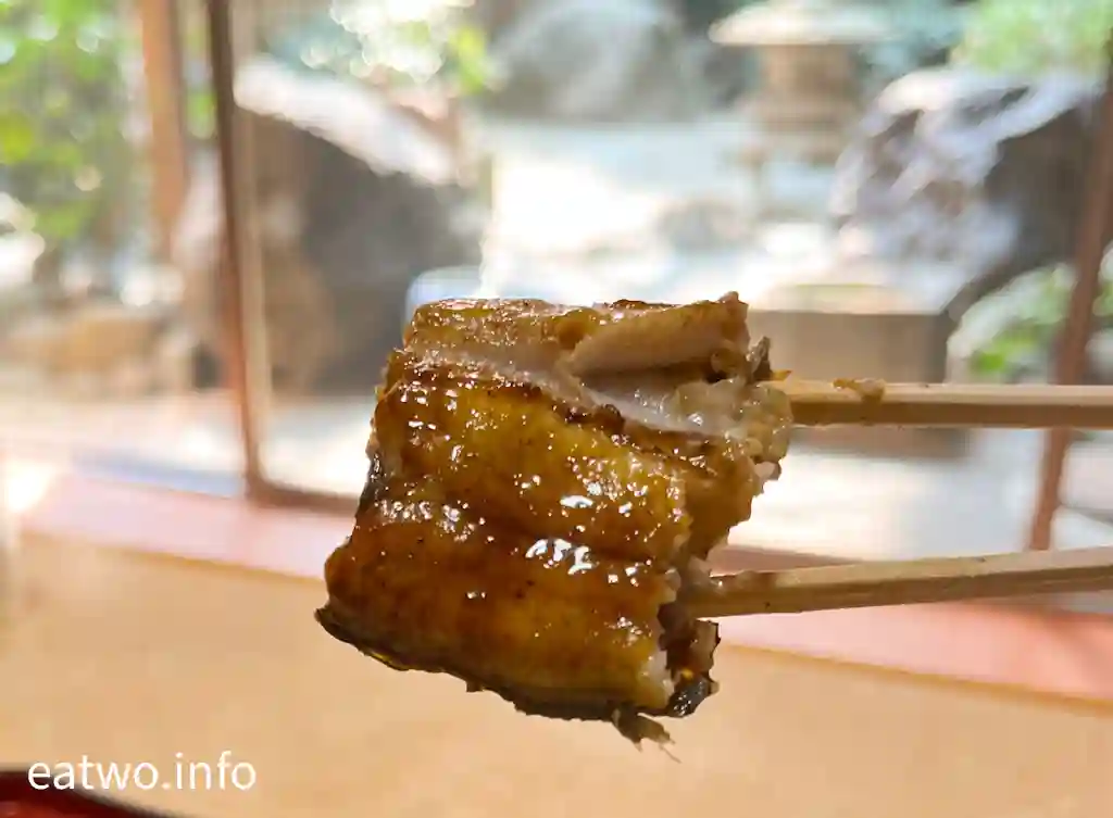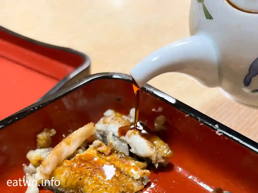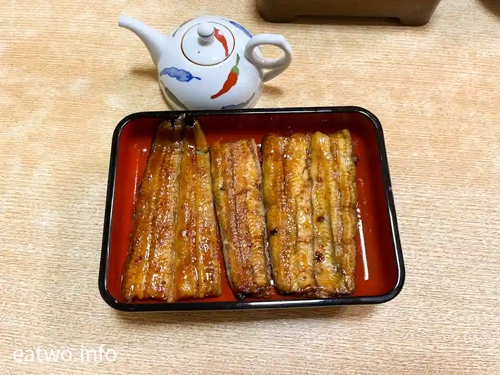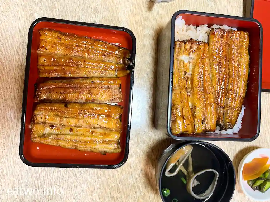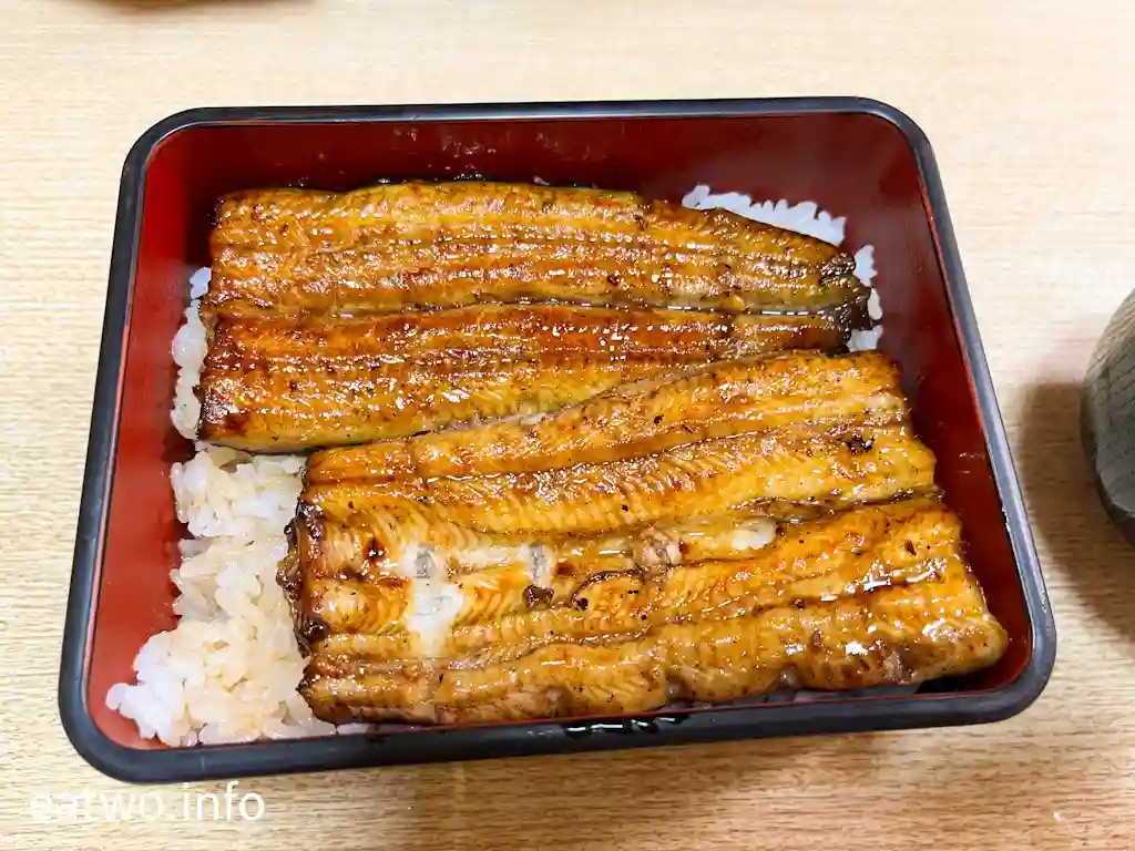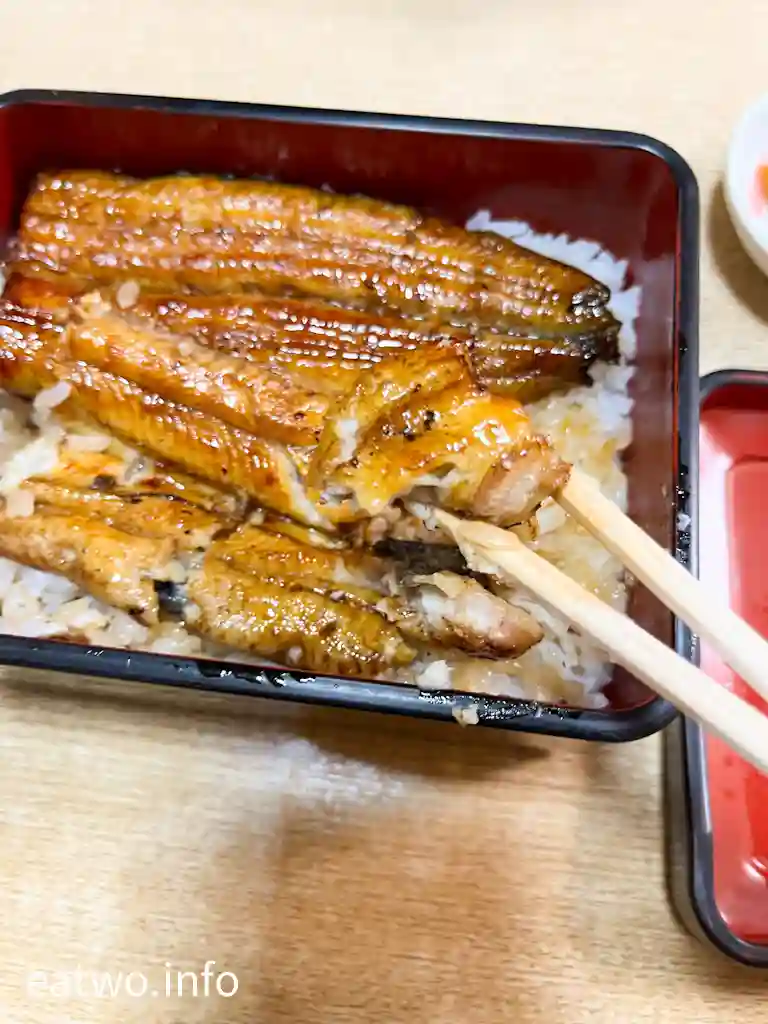 鰻魚飯就係上層有一片片鰻魚,又有白飯喺底,有白飯會較有飽足感。鰻魚上有鹹甜醬汁,另外重有一壺醬汁,如果嫌鰻魚唔夠汁,可以自行加添專用鰻魚醬汁。經過蒲燒嘅鰻魚,煮成焦黃色,擺放有蓋日式盒內。鰻魚入口軟嫩,表皮微微酥脆,魚香十足,魚脂感誘人,但唔會有好重脂肪,亦唔會有魚骨,魚肉質感彈牙,層次豐富,但太多汁嘅話會過鹹。