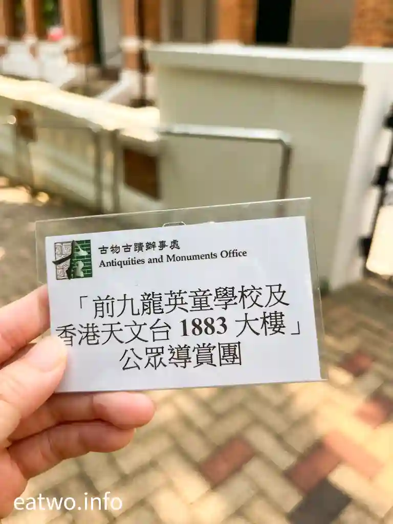 由於「前九龍英童學校」(即「古物古蹟辦事處」)因進行維修工程,所以目前係禁止進入,故導賞團只會於門外進行。每位參與者都需要珮戴指定導賞團識別證,導賞完結之後歸還就得。導賞團係由義工姐姐帶領,第一站會先於門口講解歷史同特色,真係準備充足。而第二站就會直接上到去平時一般人唔可以隨便進入嘅「香港天文台」,由導賞團義工通知當局工作人員,然後就可以直接進入「天文台」範圍。不過,呢度一樣唔可以隨便亂走,只係可以於外圍參觀,最多都係進入一個展覽室。