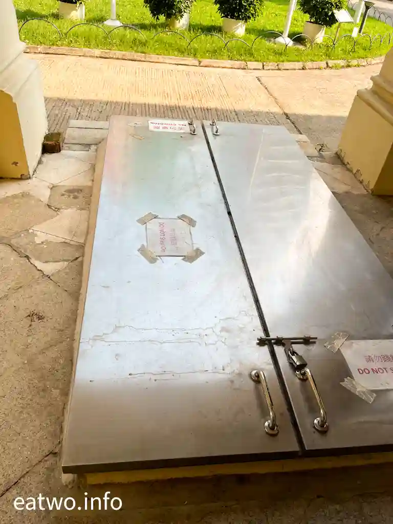 及後,導賞團會上行斜路,直達「香港天文台1883大樓」正門大閘。由義工通知當局工作人員,然後獲得放行,大家就可以直接止行至頂端嘅神秘建築物!