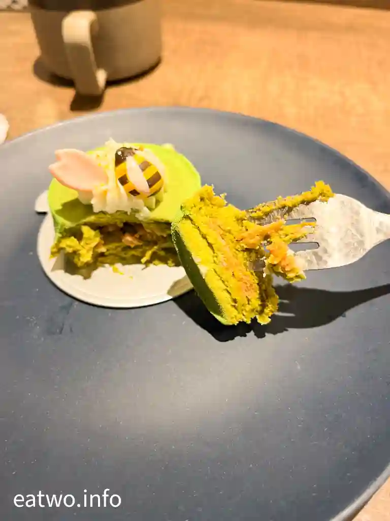抺茶係該店出色之作,今次選擇柚子忌廉南山園玄米慕絲榛子脆脆抺茶蛋糕,既選用日本食材,亦配合香港人鍾意嘅打卡風格。蛋糕入面有抺茶,入口甘甘澀澀,據悉係以選用丸久小山園宇治抹茶炮製。雖然係包含慕絲,但質感唔係柔滑質感,反而係偏紮實感覺。而頂頭就有酸酸甜甜嘅柚子,重有玄米茶,味道清香,蛋糕入面又有粉紅色嘅榛子碎,增加咬入口嘅質感。係蛋糕size比較細,好似法式甜品嗰種一口size。