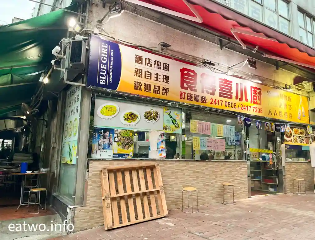 位於荃昌中心地下一隅嘅「食得喜小廚」,座落「三棟屋博物館」對面,由2011年開業至今僅有約14至15年,唔算係老牌大排檔,只係舊時曾經因為電視效應而為人熟悉,其實一直都係街坊食堂。只不過至少係香港人僅存嘅地踎大排檔,所以要留意夜晚踏入某個時間就會特別多客人排隊入座。