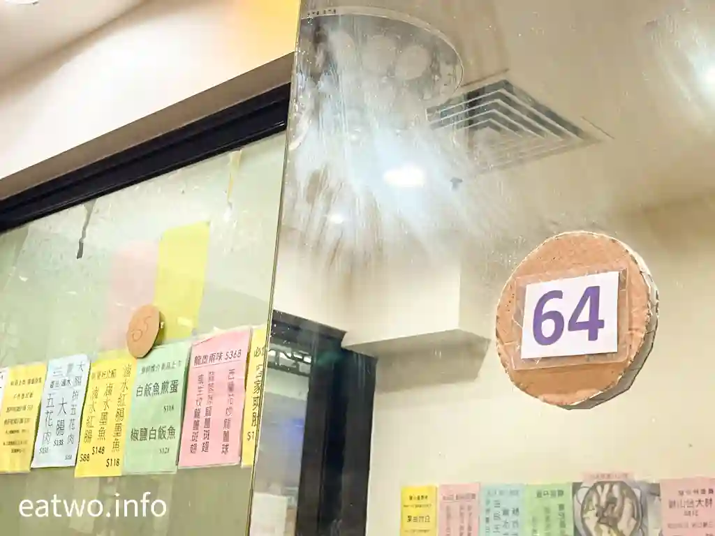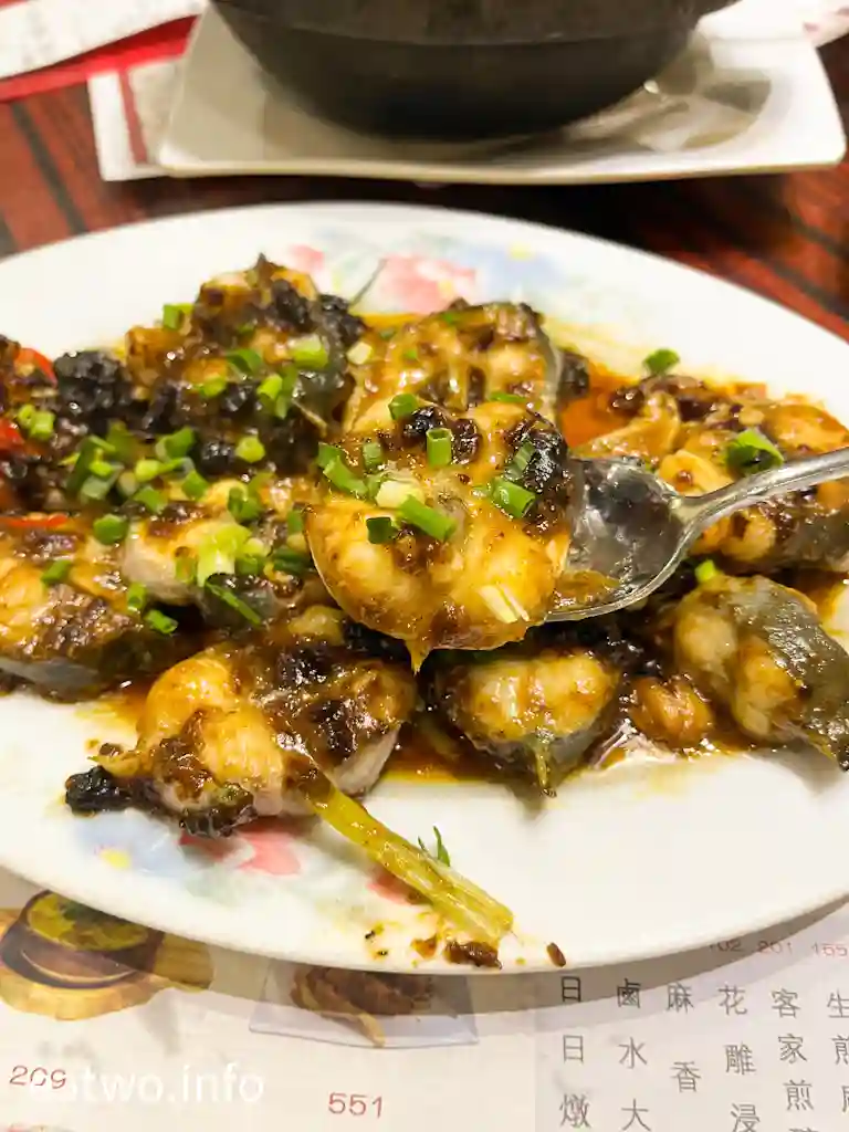 店內菜式選擇眾多,例如椒鹽鮮魷$138、椒鹽九肚魚$108、豉椒鵝腸$118、椒鹽蝦$118、客家蛋卷煲$118、魚肚浸勝瓜$138、豉油雞$138半隻、沙拉骨$108、小炒皇$108、滷水鵝例牌$108、香蒸馬友$188、生煎鹽香馬友$188、台式炸蚵仔$118、花雕浸鵝肝$98、紅燒乳鴿$48、孜然寸骨$128、酥炸蠔餅$108、西蘭花炒龍躉球$188、椒鹽白飯魚$128、啫啫時菜煲$118、啫啫雞煲$98、豉汁蒸大鱔$148,重有古法秘製羊腩煲、四川麻辣雞煲、打邊爐等等。