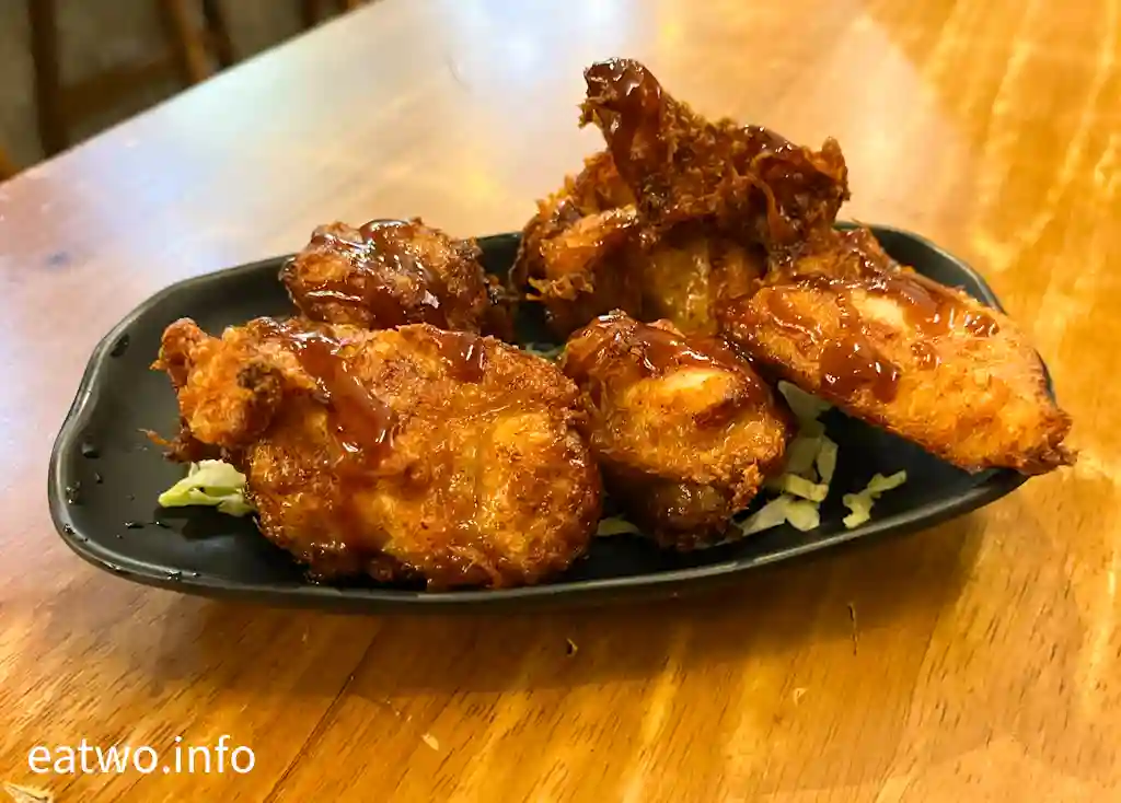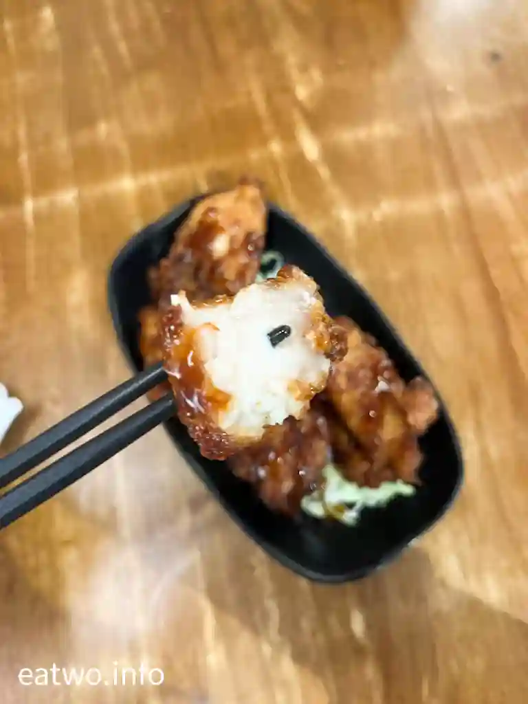 呢間「麵屋黑岩」座落於深水埗長沙灣道主要大街上,外面就係巴士站,週邊都係街坊舖頭,間間都係街坊價為主。店內以拉麵為主,但同時都有其他菜式選擇。唔單止有原味拉麵$87、黑蒜拉麵$89、海老拉麵$89、醬油拉麵$87、鰹魚拉麵$89、蟹肉拉麵$93、清湯醬油拉麵$87、白貝清湯拉麵$98,重有丼飯可以選擇,甚至係咖哩唐揚雞、炸吉列蠔、日式豬軟骨等。小食中有款唐揚雞,炸得唔差,係爭少少脆感,不過熱焫焫上檯,表面有微甜醬汁,入面都算軟嫩。