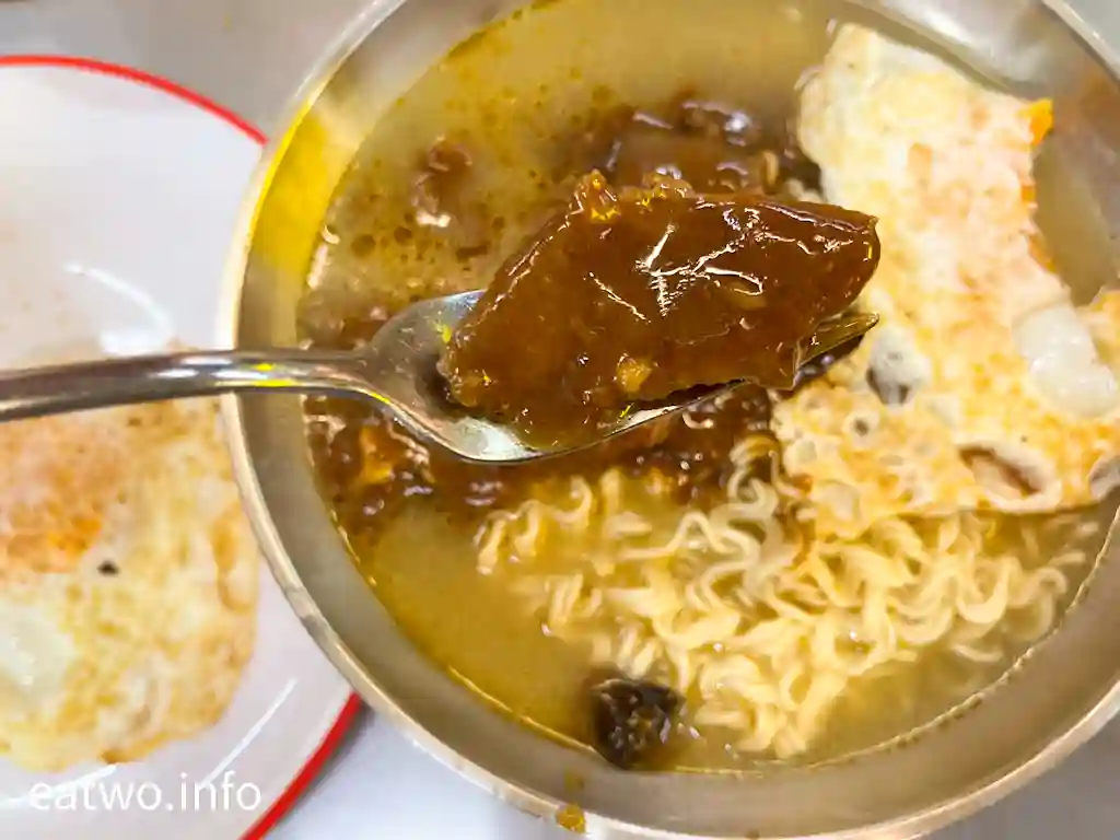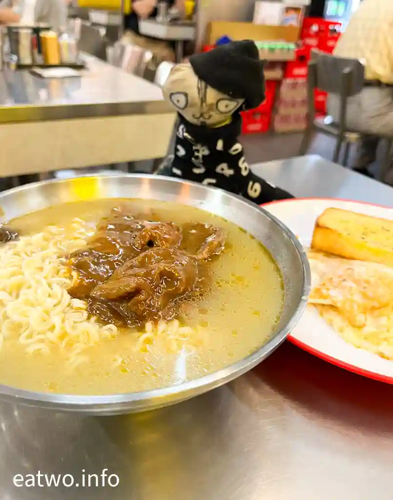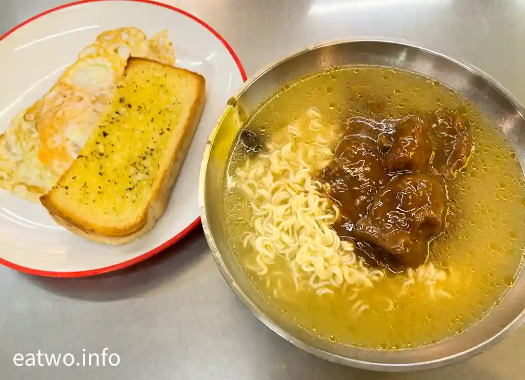 沙嗲牛肉麵同雪菜肉絲米都係典型茶記選擇,同火腿通粉一樣,通常係A餐係腿通、B餐係沙嗲牛、C餐係雪菜米。而店內嘅沙嗲牛肉麵唔係特別好濃,但就唔係好鹹。牛肉片量唔算少,入口軟滑,沙嗲味唔係太重,只係剛剛好嘅沙嗲味,當中亦有花生粒,皆因沙嗲醬汁本身就應該要有花生醬、沙嗲醬。
