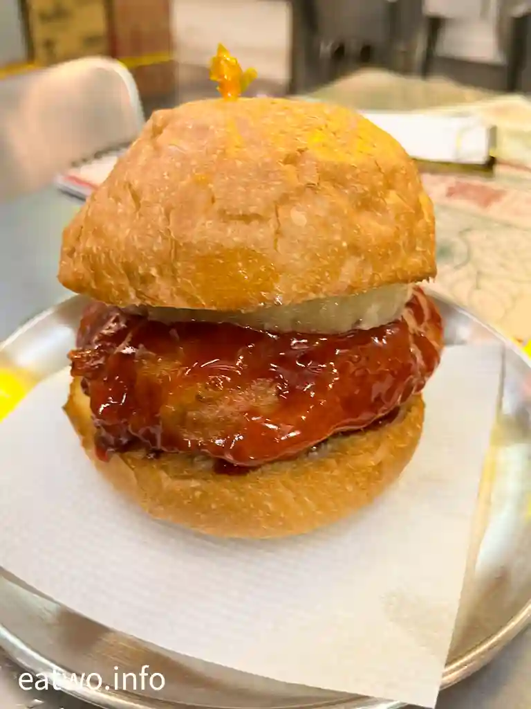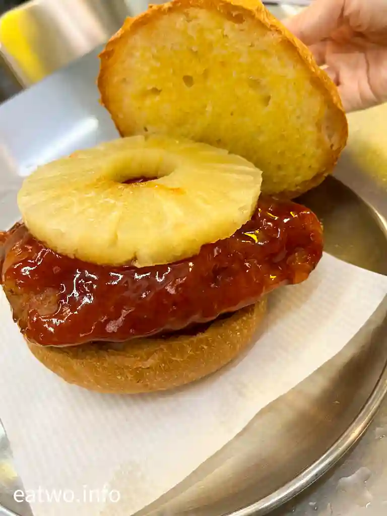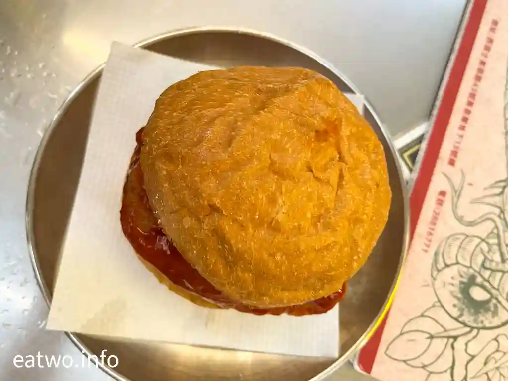咕嚕拔絲豬扒包真係最有驚喜嘅菜式,以豬扒包為主,再配以港式菜式咕嚕肉為藍本。豬扒包內既有菠蘿片,亦有炸豬扒,重有咕嚕汁。豬仔包搽咗牛油,烘烤過,所以表皮幾脆。炸豬扒本身係又脆又硬,而淋咗咕嚕汁之後,豬扒唔會好硬,但竟然重有脆感。切開豬扒包時,可以同時將豬仔包、菠蘿、炸豬扒放入口,入面重有肉汁,層次分明,醬汁酸酸甜甜,又真係幾有菠蘿咕嚕肉味道,港式豬扒包其實係可以比得上澳門豬扒包。
