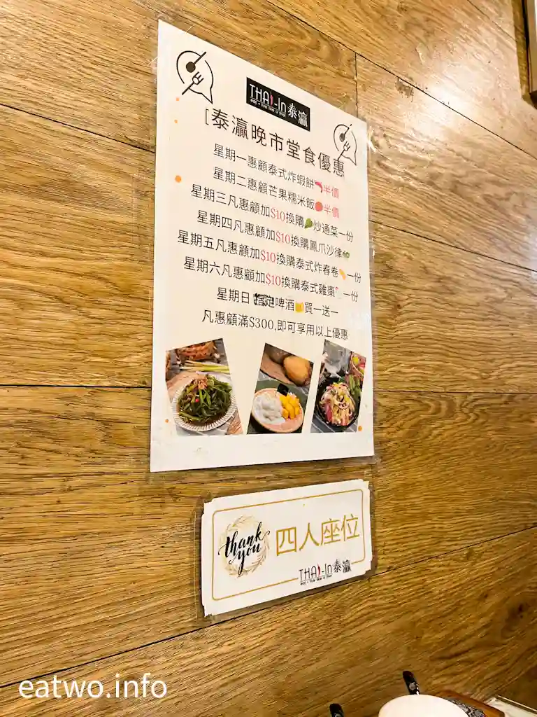 對於香港人嚟講,最能夠於市場上屹立嘅就係維持住街坊價錢嘅餐廳,只不過最難確保嘅係業主唔加租。佐敦吳松街有多間小店可以選擇,E.A.Two目前仍然未食晒,上次就去過一間西餐廳,今次就前往完全相連嘅一間泰國菜餐廳,價格親民,都係拍拖兩個人可以去嘅小店。