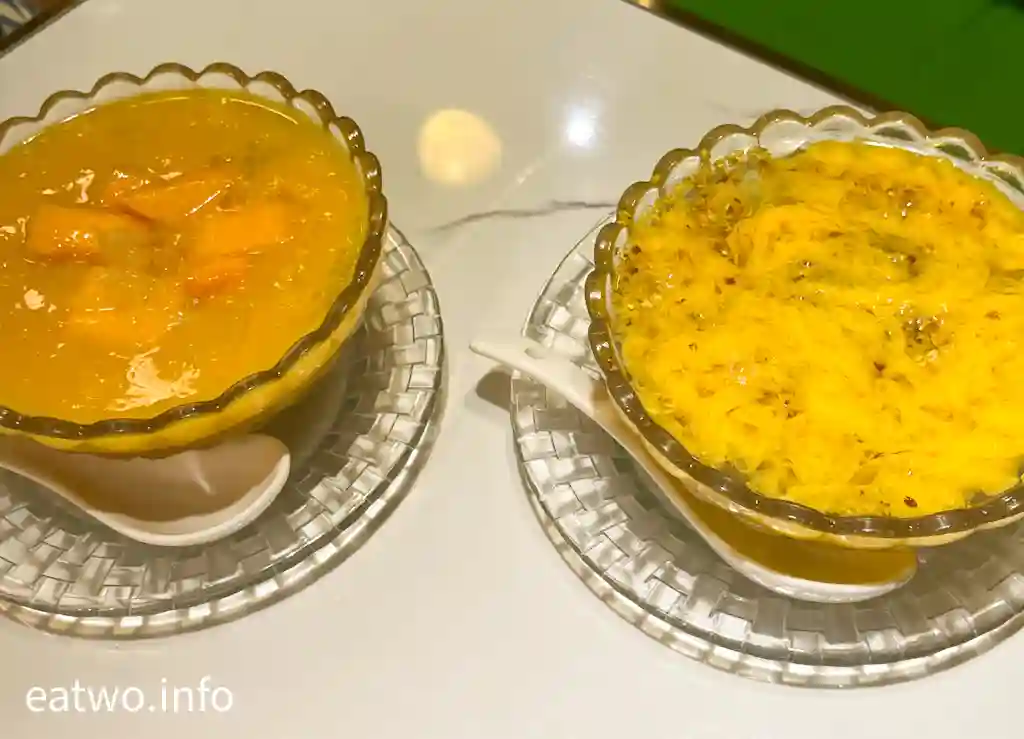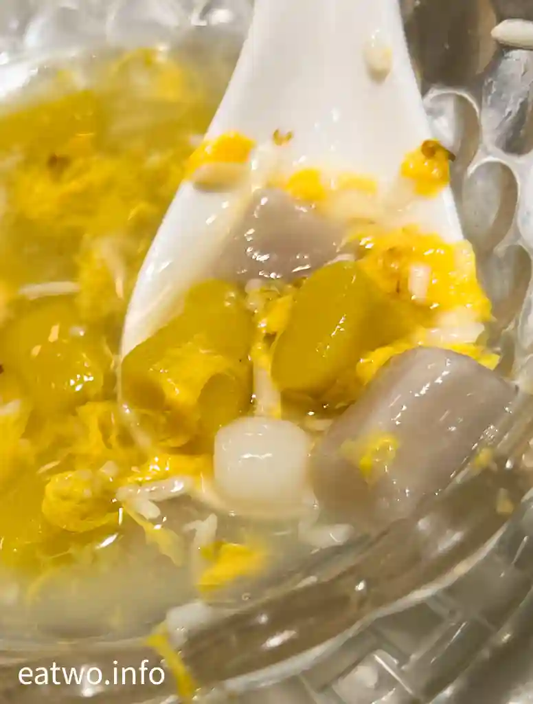 貴妃楊枝甘露有香甜芒果,亦有帶有酸甜味嘅柚子,好似有芒果汁同椰汁咁,就係楊枝甘露做基底,配搭芋圓、地瓜圓、小丸子都係好夾。而酒釀桂花只有熱食,所以入口暖笠笠,有淡淡酒香味,米香同酒香夾雜,非常清香,每一啖都有濃濃桂花香,表面重有蛋花,每一層味道均恰到好處,唔係太多或太少,反而有啲清香甜潤,感覺可口又滋潤,唔會只有死甜。