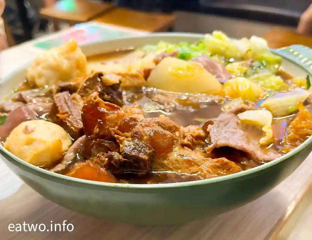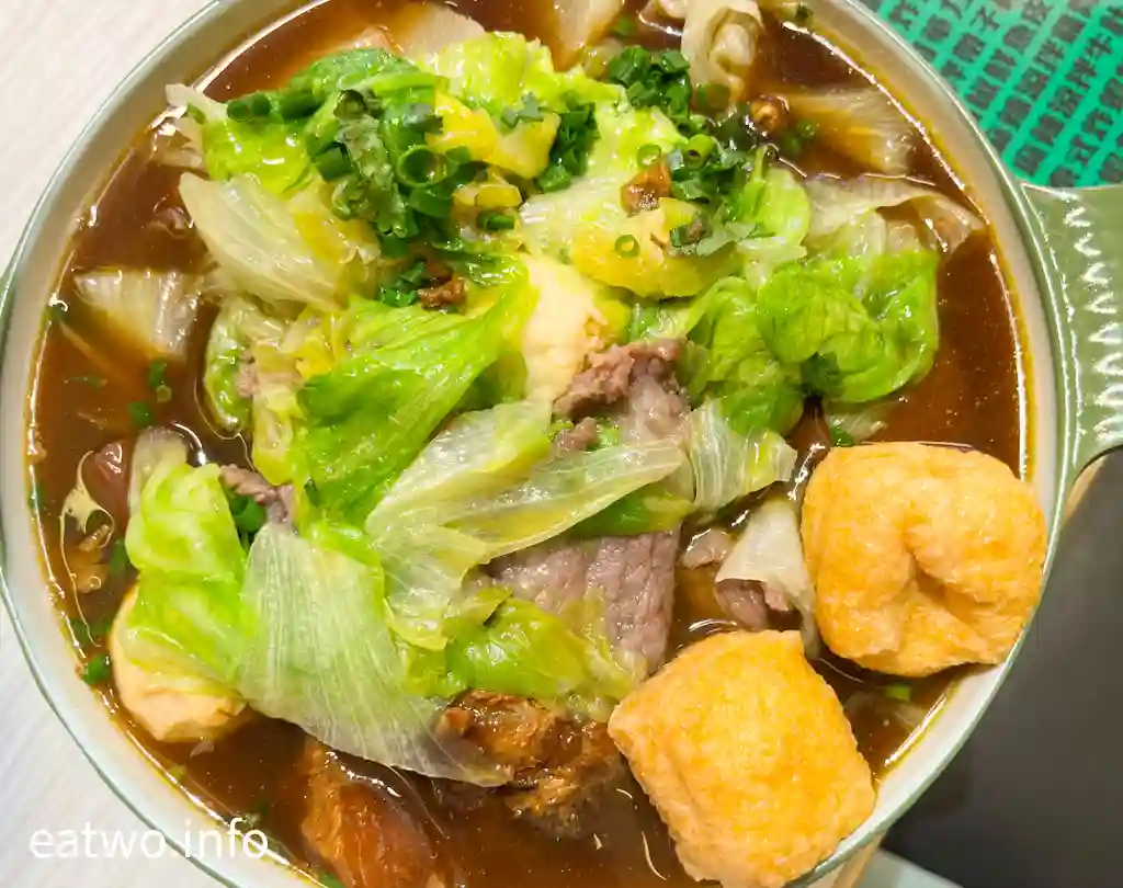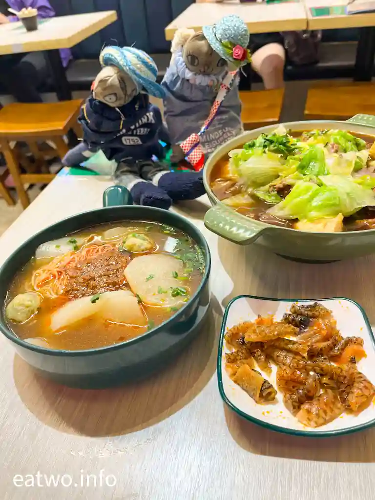 如果拍拖兩個人去食,E.A.Two另有建議,其實點一碗最低消費嘅2餸車仔麵,然後可以再點一款全場最大碗嘅德哥招牌大盛湯麵$63,包含有蘿蔔、豆卜、豬軟骨、五香牛腩、紅腸、花枝丸、魚蛋、爆汁包心豬肉丸、咖哩豬皮、生菜、雞翼、鮮牛肉、豬紅,合共有13款車仔餸,share返其實會抵過叫兩碗普通車仔麵,又可以sweet住share食。