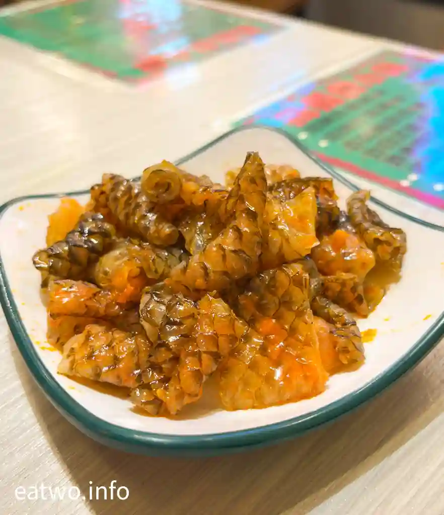 店內綠色餐牌中,有唔少小食可以選擇,包括招牌炸雞翼$16至$25,3至5隻,感覺不過不失,驚喜不大,另有酥脆炸魚皮$14。不過,最令E.A.Two驚喜嘅係藤椒鮮魚皮$17!以往食過呢款小食,有啲係整到軟身,好容易中伏,今次食完該店嘅藤椒魚皮,先知道原來好食嘅藤椒魚皮係可以去到呢個地步。