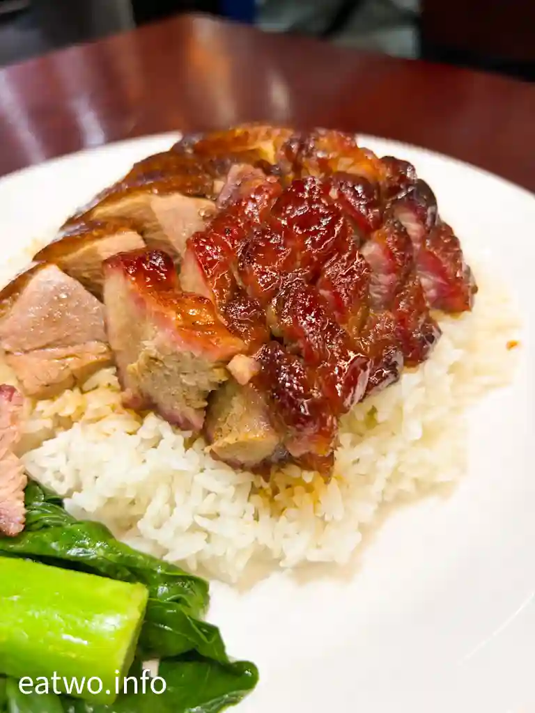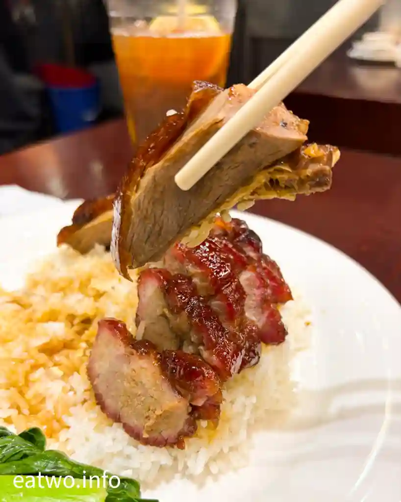 今次同以往一樣,兩個人前往用餐,挑選一款較平、一款較貴嘅燒味飯,分別係叉燒拼燒鵝飯$70、燒鵝髀飯$125。叉燒半肥瘦不過不失,唔算乾柴,都算盡責。當然、燒鵝髀肉質係更嫩滑,但燒鵝肉本身其實都係軟腍。曾經食過「大壹燒鵝」嘅燒鵝飯,該店嘅燒鵝表皮係極香脆,脆度真係top,但脆皮之下就係非常油膩。而「天天燒鵝皇」嘅燒鵝係有少少失望,一啖入口有少少平平無奇嘅感覺。只不過,燒鵝表皮無咁脆口,但肉質就係比厚實,而且係咁油膩。