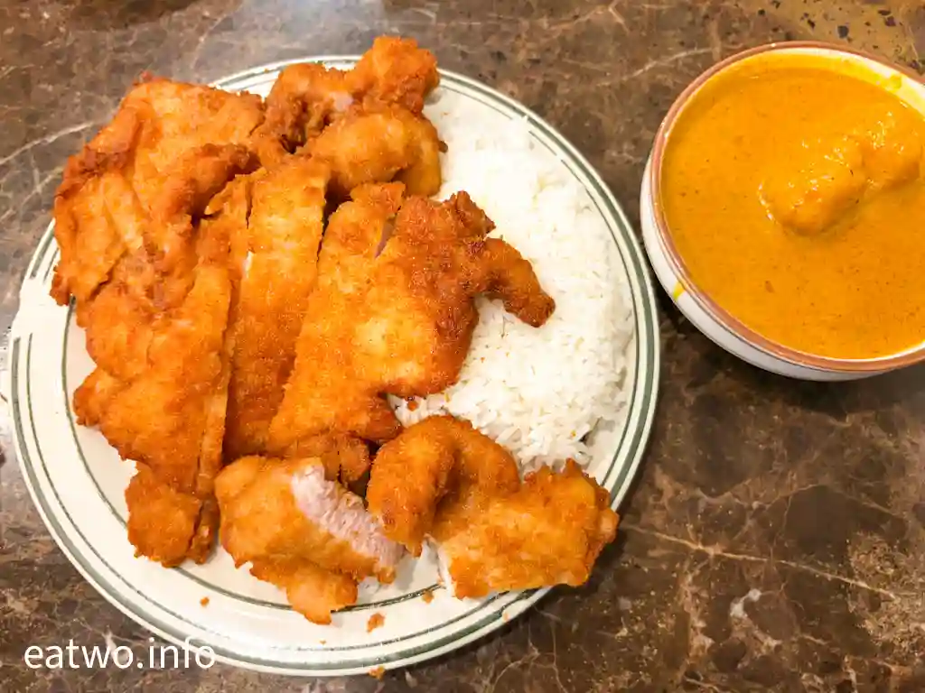 炸豬扒評價上,真係要給予好高分,唔單止表面酥脆可口,入面亦鬆軟無比,唔會有乾柴感,有啲肉汁,而且有醃製過,再配搭咖喱汁就更有層次,而且更開胃。炸豬扒入口好鬆化,甚至有啲會融化嘅口感,一定要熱焫焫食,今次刻意留返一兩嚿最後食,發現炸豬扒凍咗真係比較遜色,油膩感較重,而且食埋就好滯。