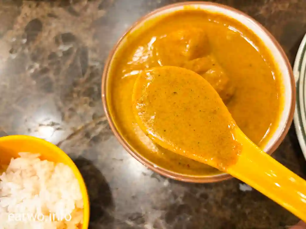 平時經過該店,唔難發現門口營業時長期都出現排隊人龍,而條人龍通常都係絕望嘅程度。今次E.A.Two於傍晚經過,竟然遇上千年一遇嘅情況!時間係傍晚約6點,時間係開店前30分鐘。而門口排隊人龍唔算多,大概得十個左右,唔多過20個,而且前面突然有兩三個放棄走咗。呢個情況下真係少之又少,所以臨時決定一嘗呢間人氣咖喱店。下次再遇到呢個情況,可能係1000年之後。
