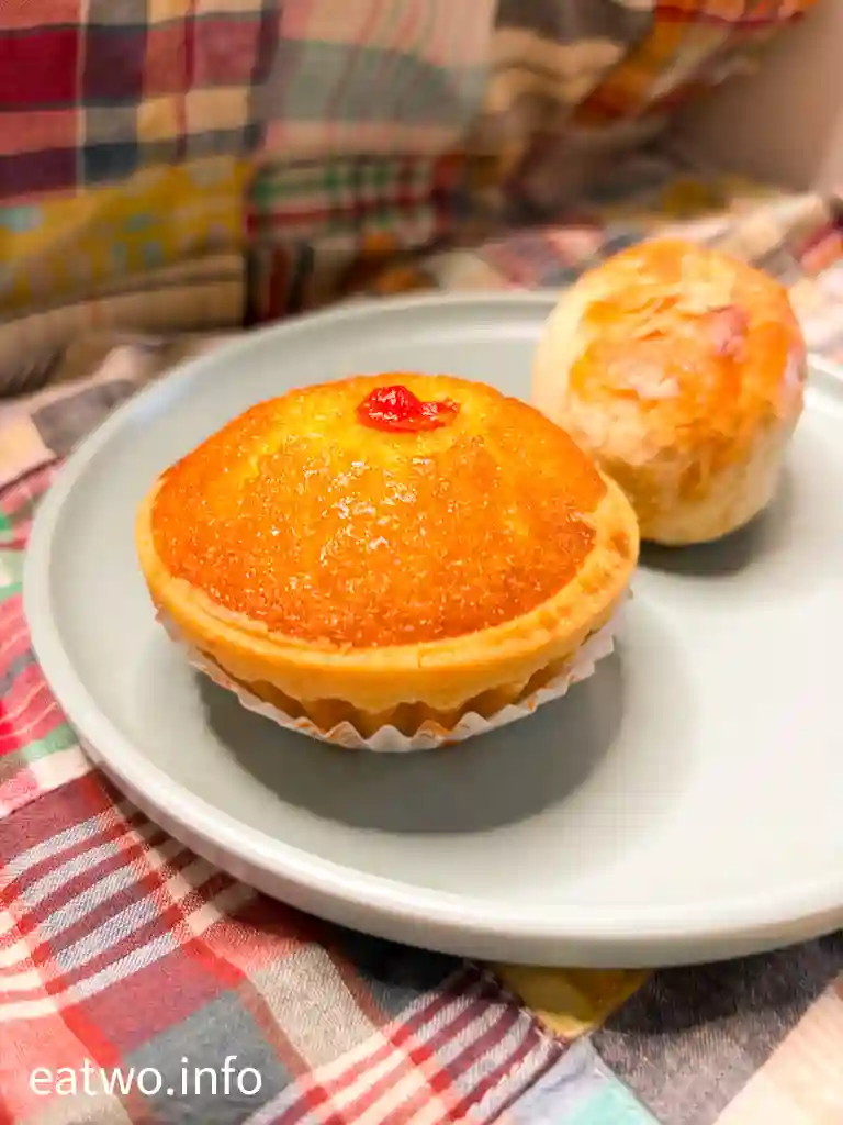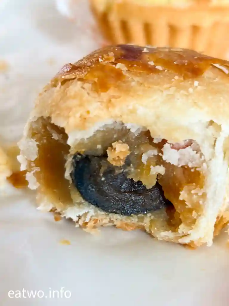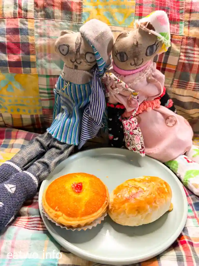 除咗麵包,重有蛋糕同甜品,比如花卷蛋糕$19、芒果卷$14、牛乳布甸$15、芒果布甸$15、黑森林卷蛋糕$12、生果切餅$16、蛋花大菜糕$12、啫喱杯$15。更特別之處,係有皮蛋酥$6、豆沙餅$6、老婆餅$6,真係好耐未見過餅店有皮蛋酥呢款懷舊中式麵包款式。皮蛋酥入面有半隻皮蛋,係西方人未必識欣賞嘅中式點心。