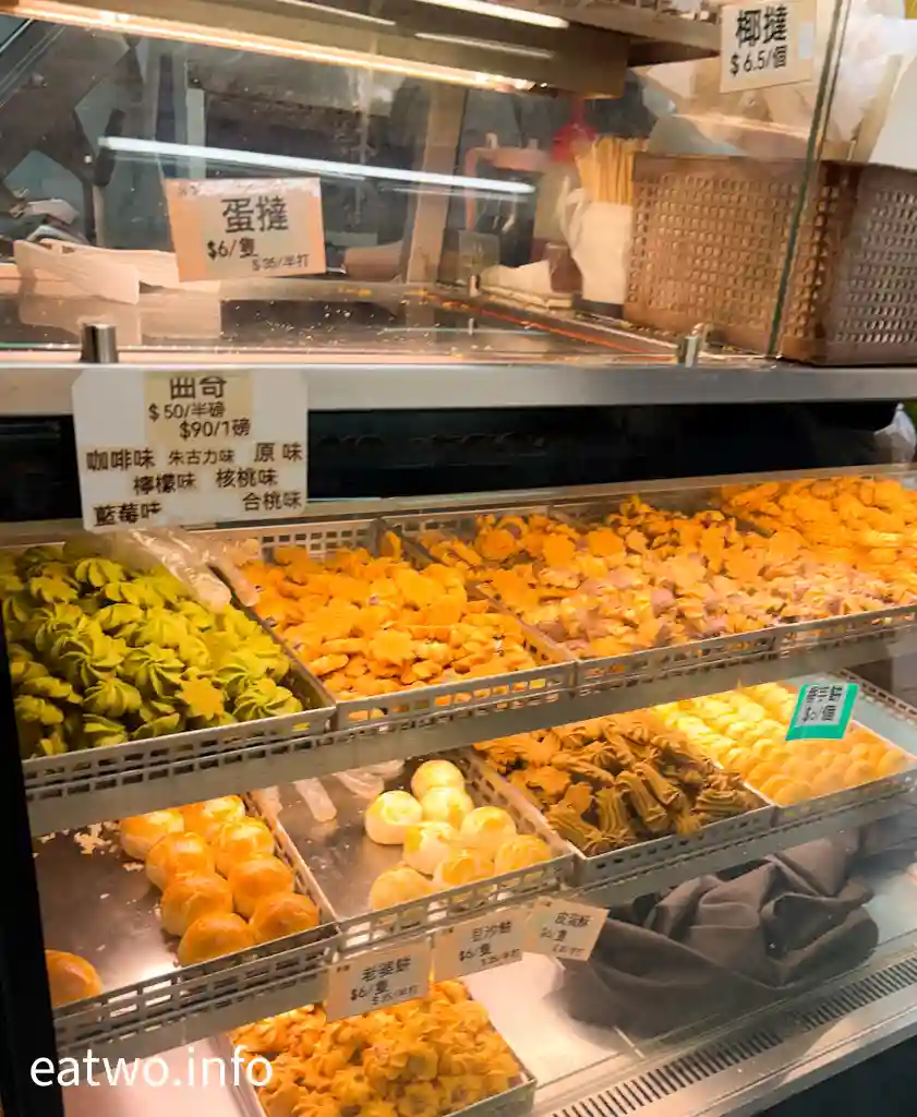 一間傳統港式麵包店,每日指定時間必然有新鮮出爐嘅蛋撻,但當日就無晒每個只需$6嘅蛋撻,有牛油皮同酥皮。所以E.A.Two只能買椰撻$6.5,都係差唔多價錢,椰撻頂頭係傳統車厘子款,入面都幾有椰絲香。
