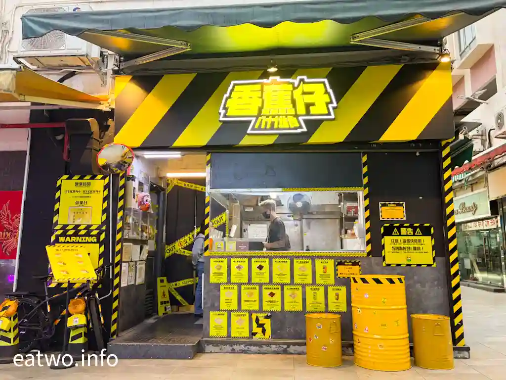 以「香蕉仔」為題嘅小食店,隱身於元朗國一個角落內,由2019年開業至今,現時就係昔日「倆口小食」嘅舖位,近鳳攸北街。該店一直以香蕉煎餅聞名,近年重有款爆漿烤麵包,兩者都係泰國小食,同泰國夜市內嘅香蕉煎餅、碳烤麵包無異,後者同樣係外脆內軟嘅餐包,入面塞滿醬料,包含有泰式奶茶口味,重有鮮油、海鹽牛奶、黑朱古力、椰香斑蘭、泰式奶茶、杜拜朱古力,現時香港每件賣$15至$18。而飲品就有泰式奶茶$25、泰式奶綠$25。