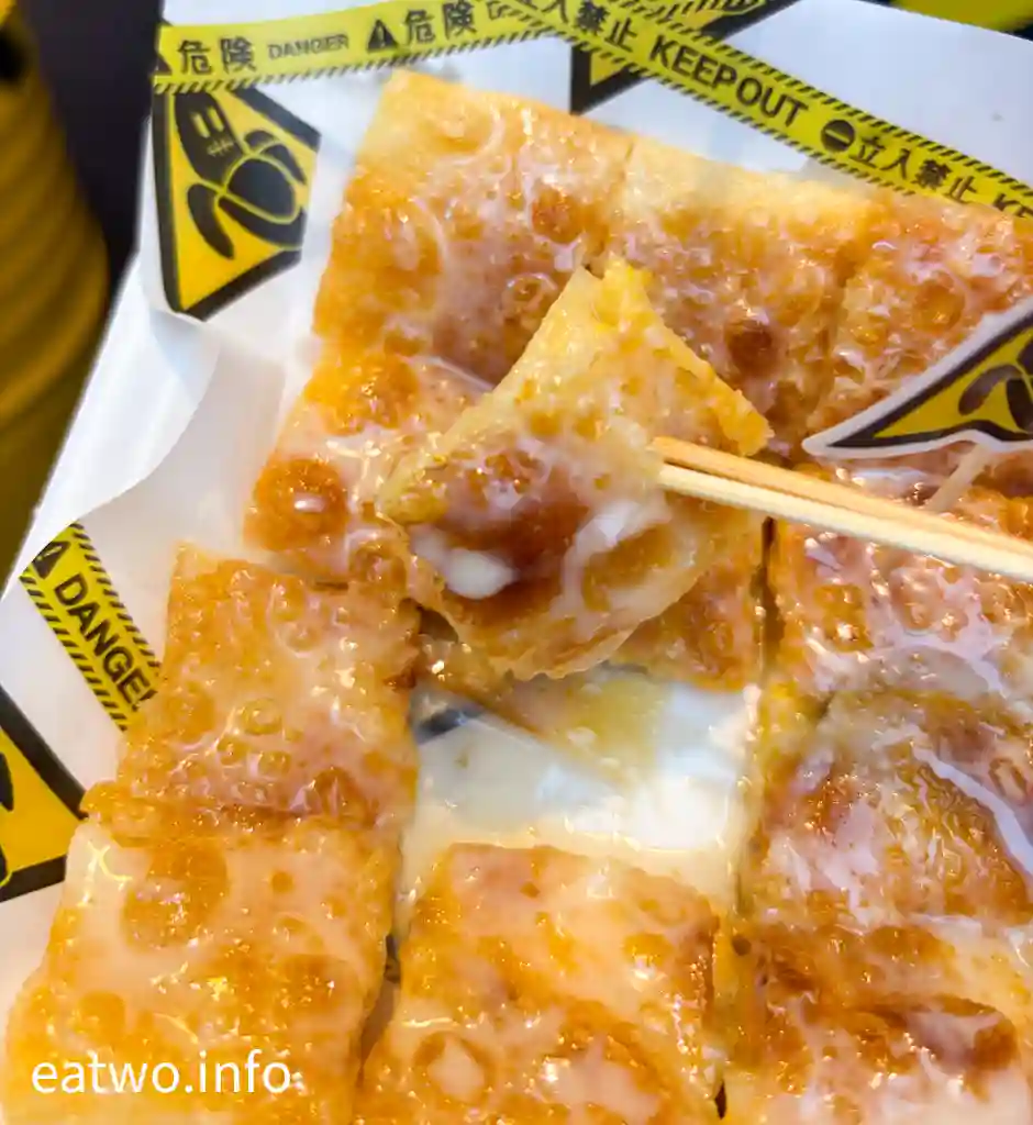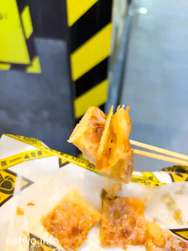 店面唔單止寫明要即刻食、凍咗就唔好食,甚至直接教埋客人食法,將煎餅分成4×4格仔,16件可以兩件兩件咁食。其實,咪即係疊住食,因為角落嗰幾嚿有啲根本無蕉,醬都係偏少,所以疊埋食先會層次更豐富。