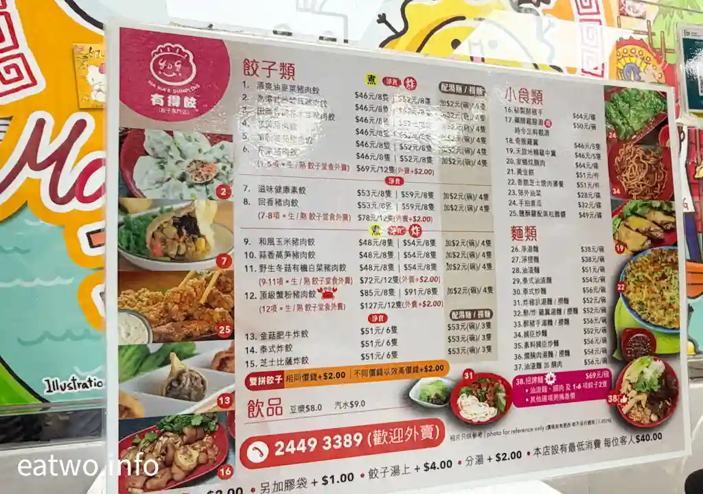 ❸ 雙拼餃子只係喺同價加$2,唔同價就計貴啲嗰個度加$2。