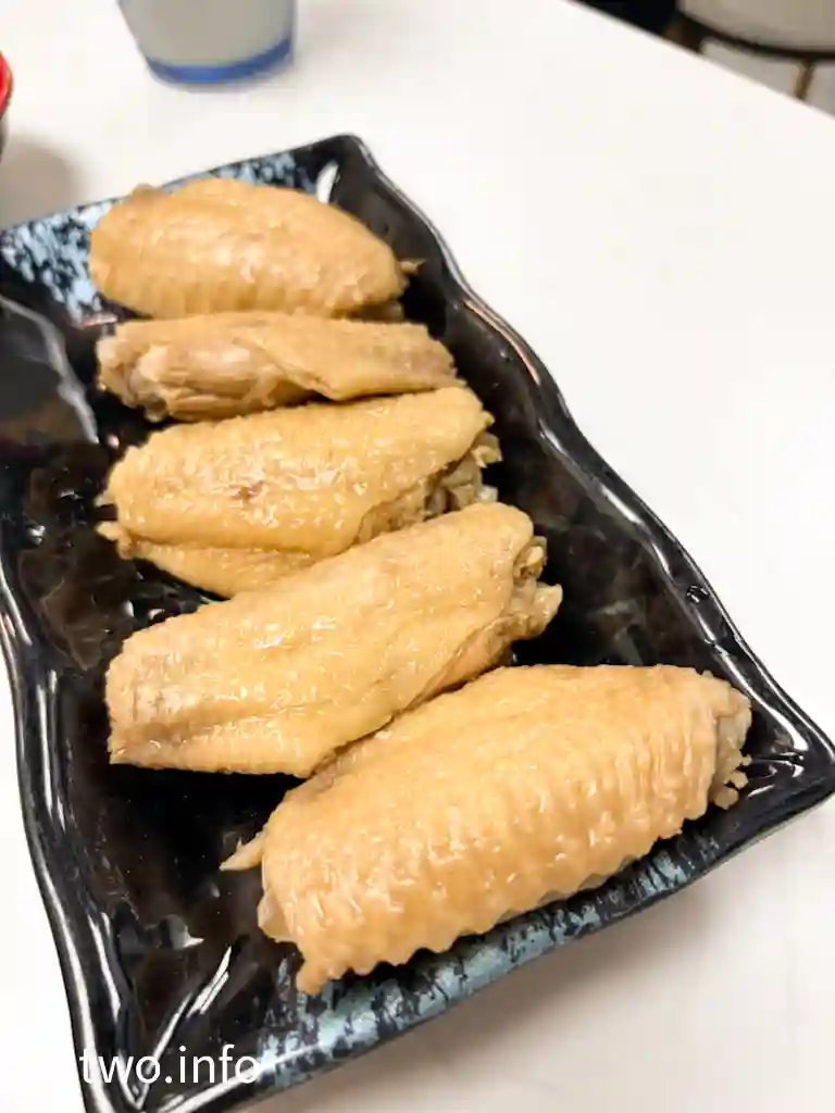 飲品有豆漿加$8、汽水加$9,重有得另外叫藥膳雞腳湯或當日足料靚湯,每碗$50,價格較高,但隔離檯叫咗,份量都唔少,睇得出材料幾豐富,湯水量就同餃子碗一樣。小食就有秘製醉豬手$64、醉雞翼$46、黃金餅$51等,醉雞翼係有酒味,係家庭式嘅味道,只不過唔係太重,亦唔係滲透得好入。